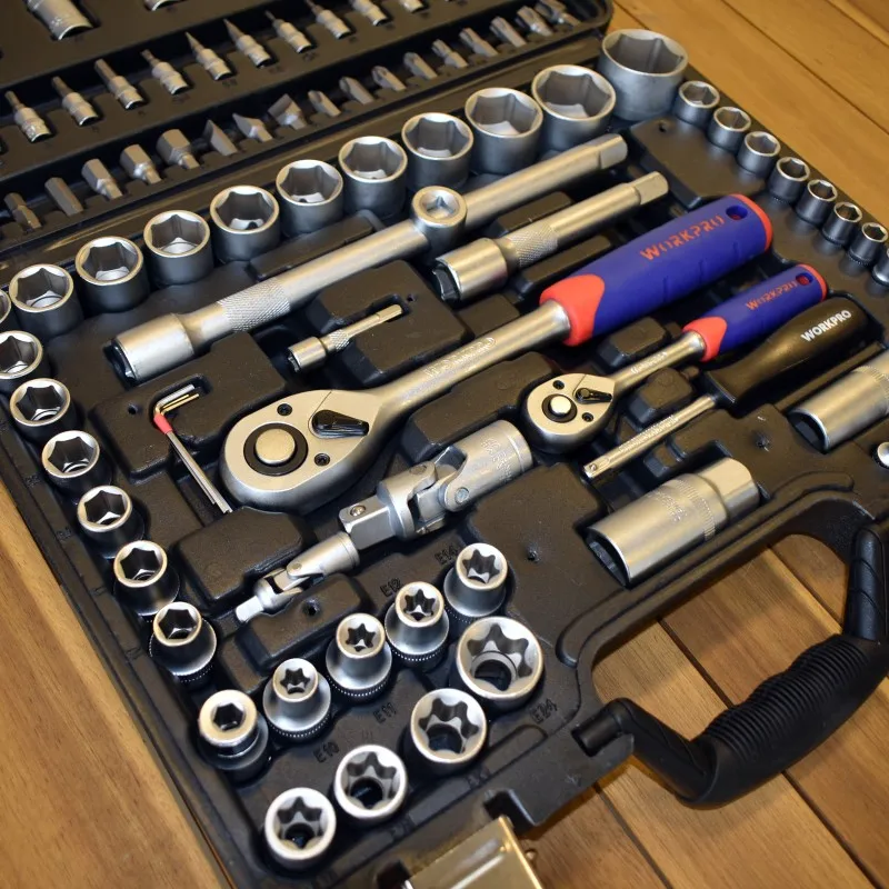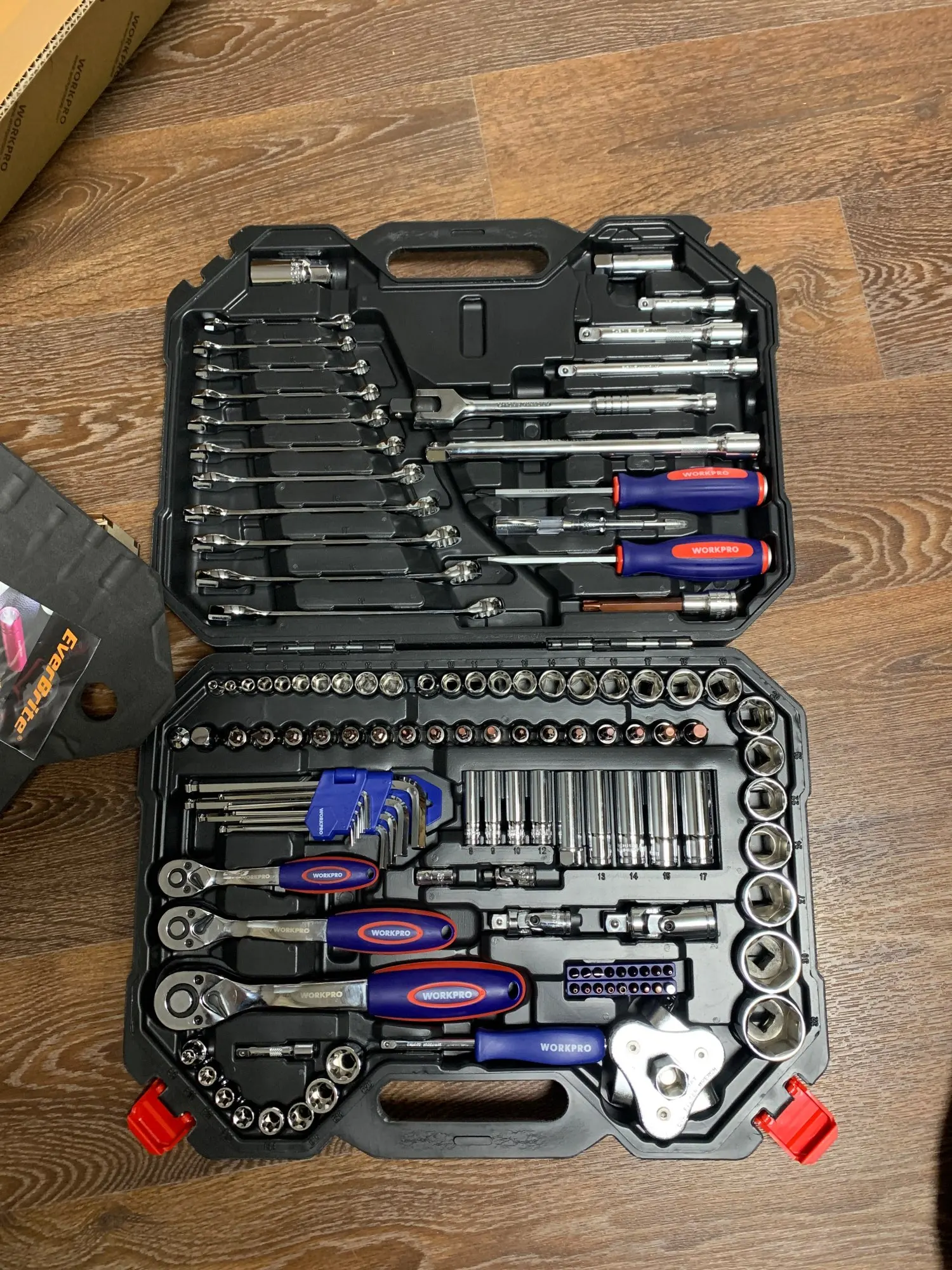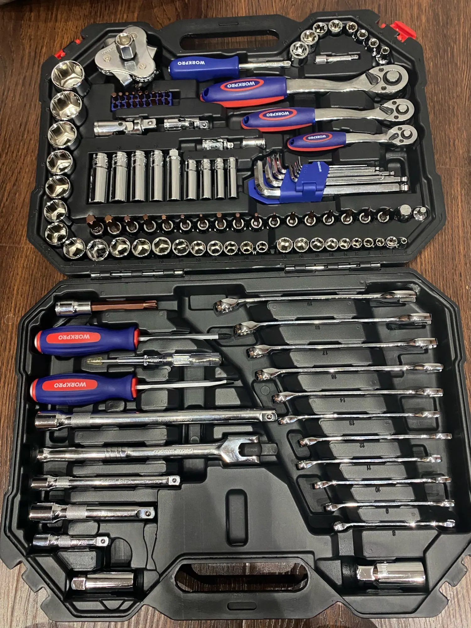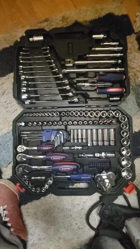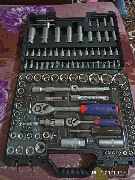 WORKPRO 123 шт. набор инструментов ручной для ремонта автомобиля, гаечный ключ Разъем набор профессиональных Инструменты для ремонта автомобиле...