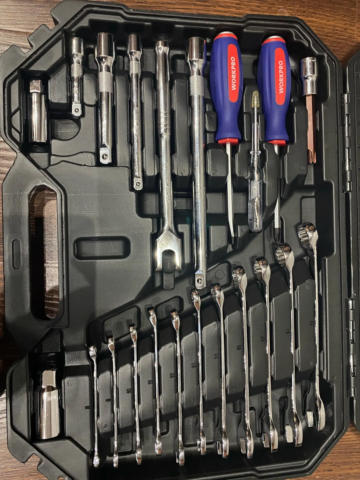 Товар получил достаточно быстро, на первый взгляд очень даже качественный. Все необходимые инструменты для обычно гаражного ремонта есть.