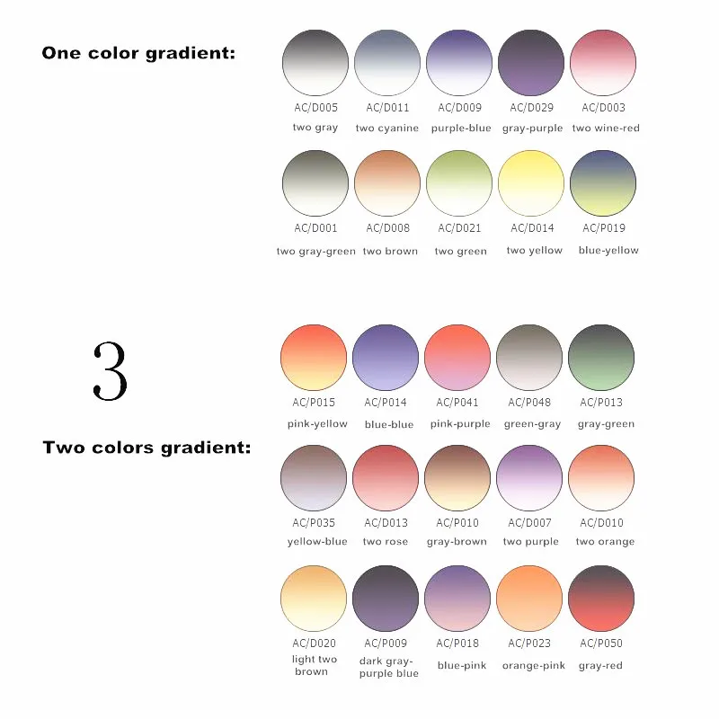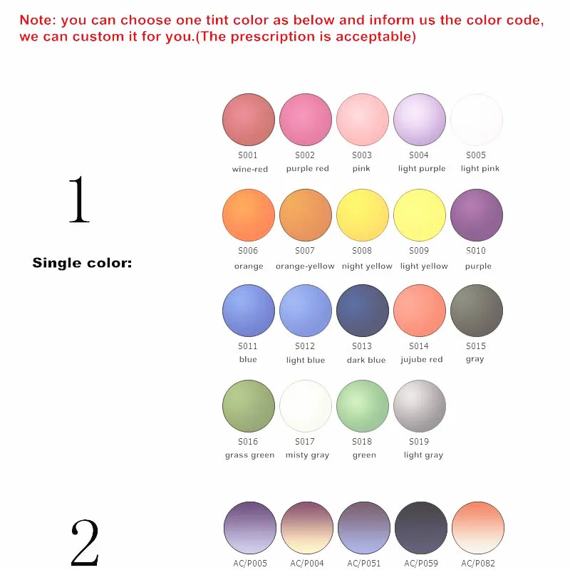 Lenses tint Colorpurple/pink/grey/brown/blue/green etc.