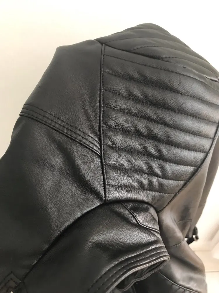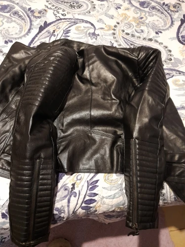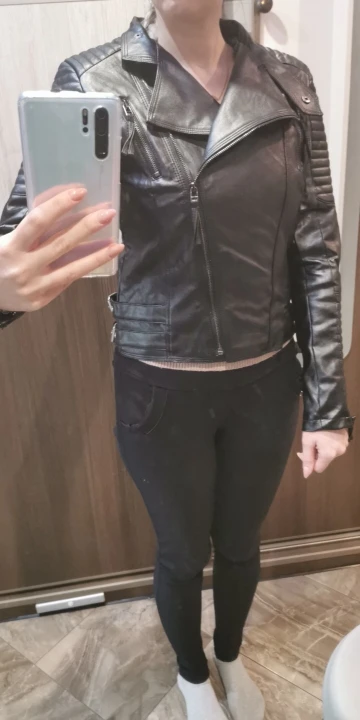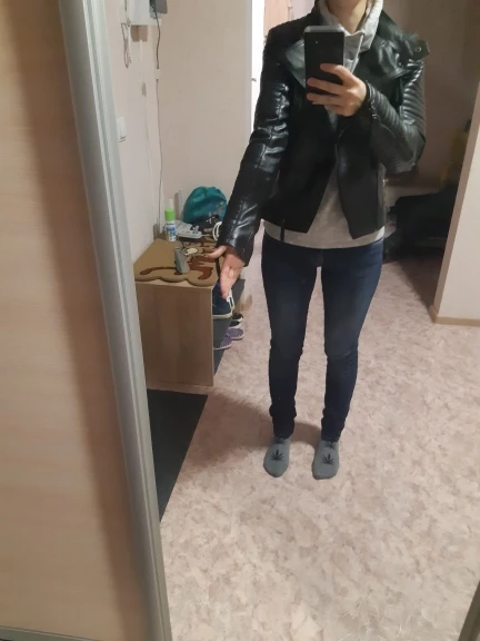 Отличная куртка. Много лет назад заказывалась такая же. Очень долго проносилась, хоть и кож зам. Размер S сел хорошо на 87/60/ , рост 160 см. Рукава чуть длинноваты. Прошлая куртка была Zara, эта без этикетки на подкладе. Доставка быстрая, в почтамат. Все отлеживалось.