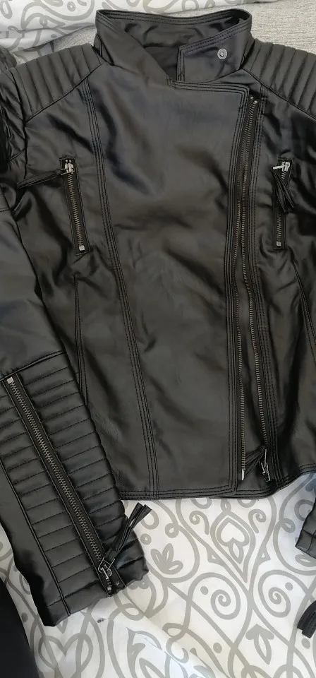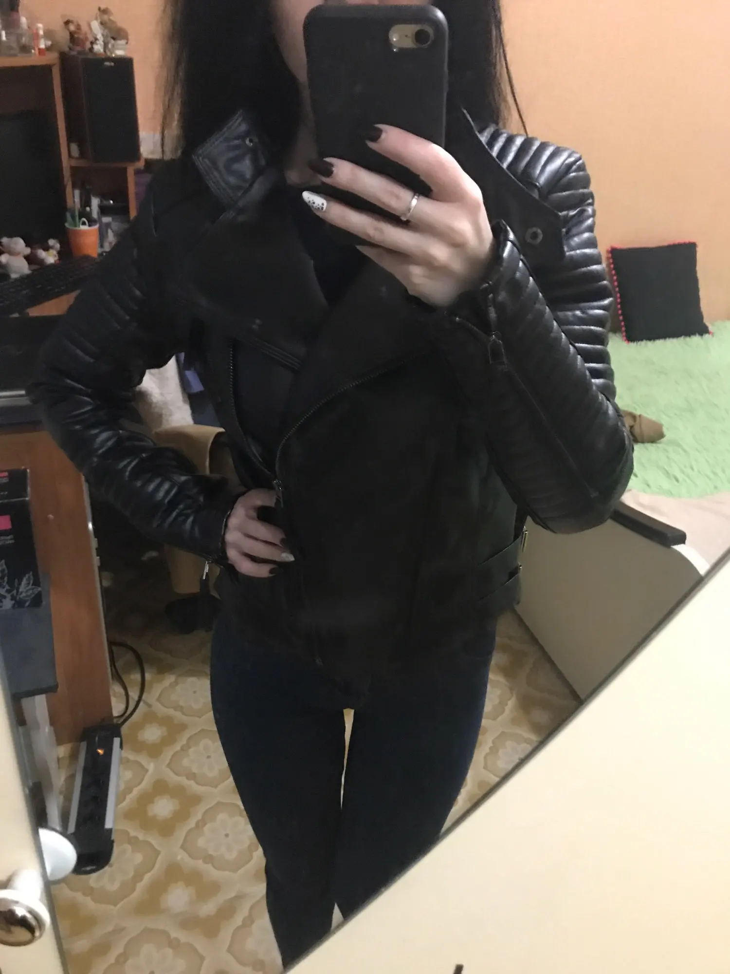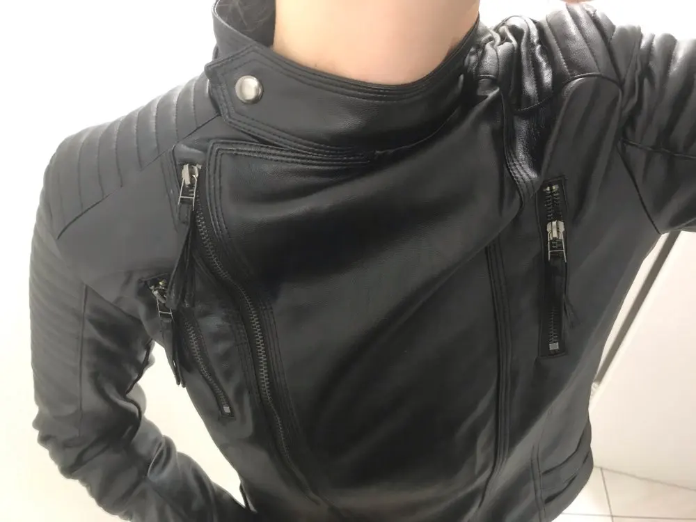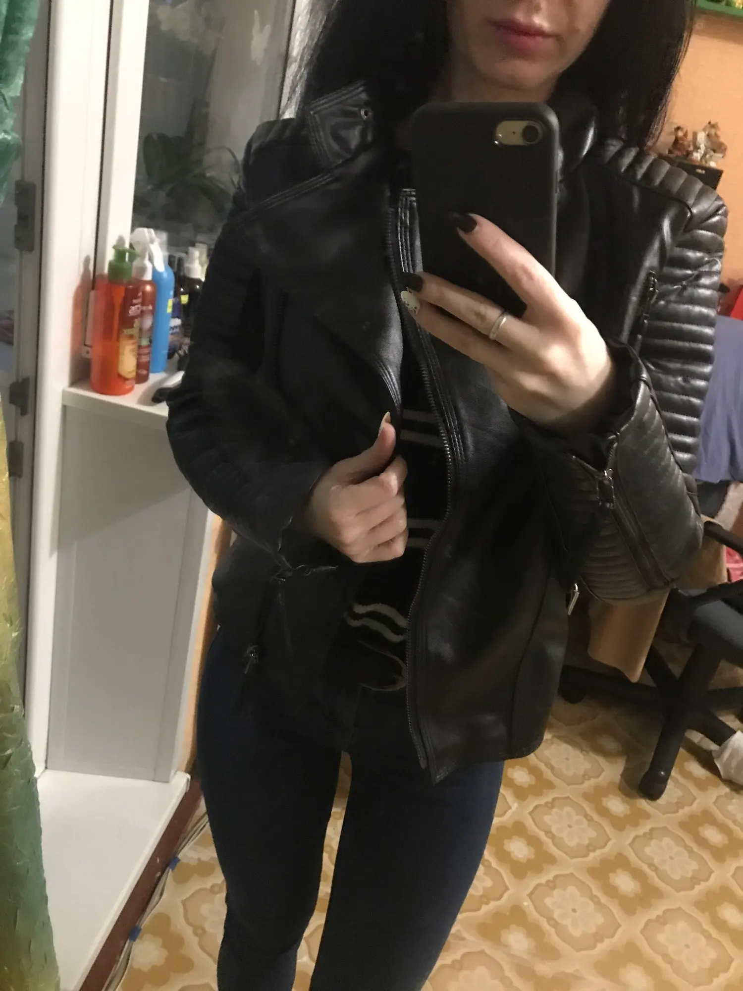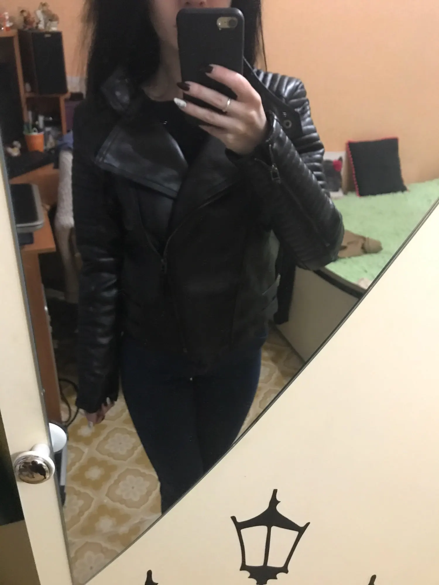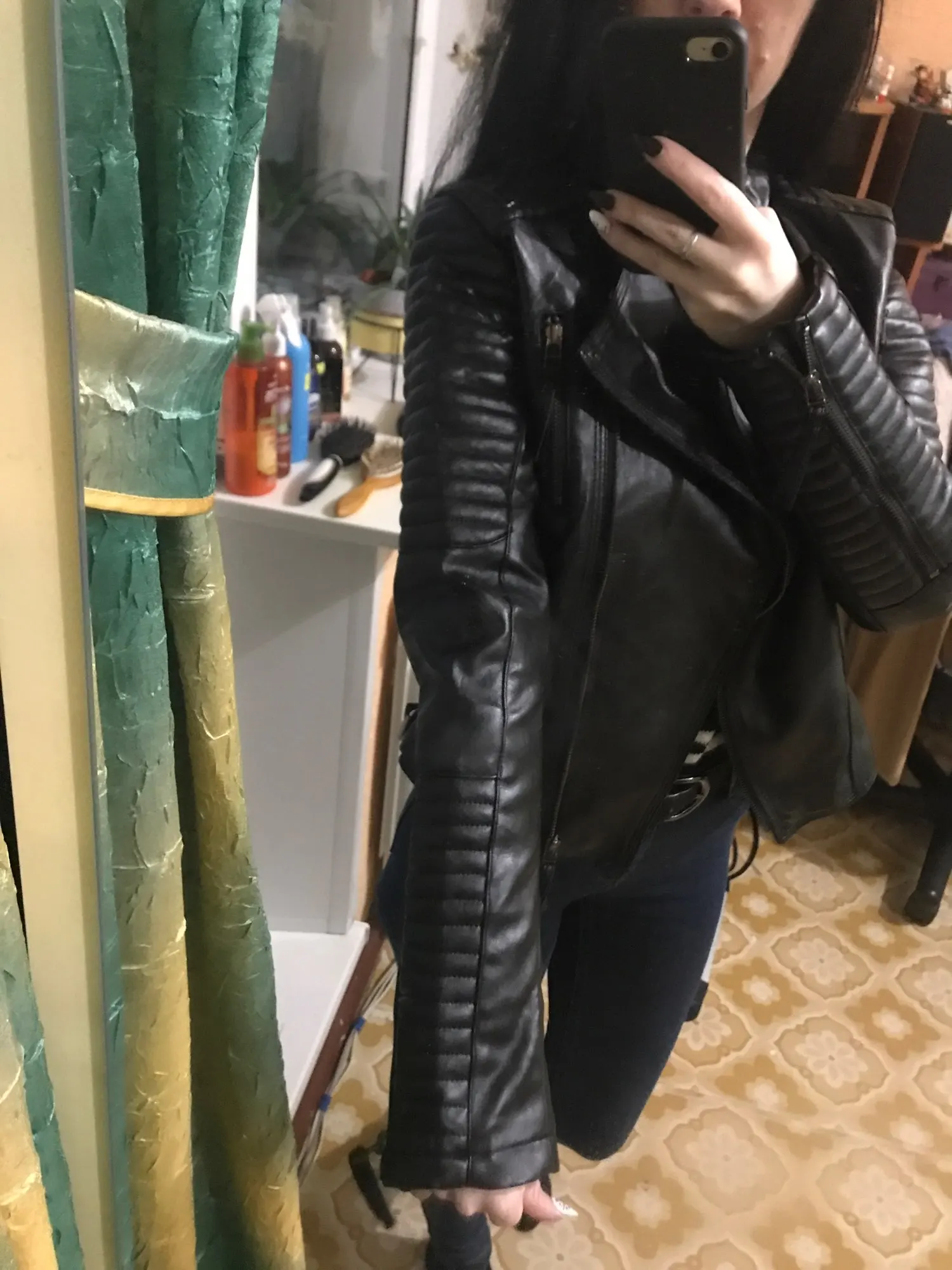 Я оставляю 4 вещи, потому что они немного тонкие, и мне не нравится, как они выглядят на молнии. Он имеет запах, который, кажется, выцветает. В целом это Милая укороченная черная кожаная куртка, которая будет наряжать наряд
