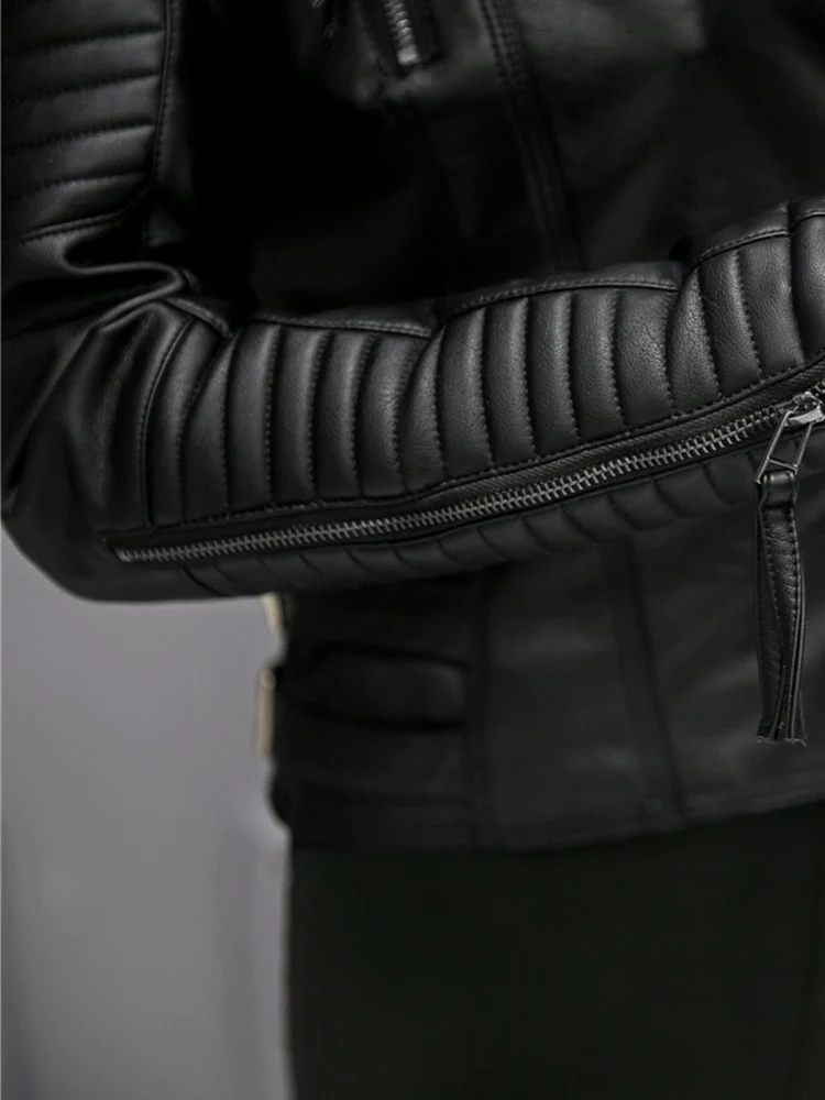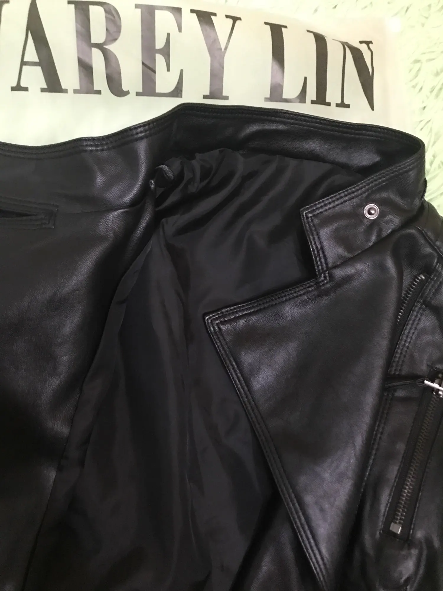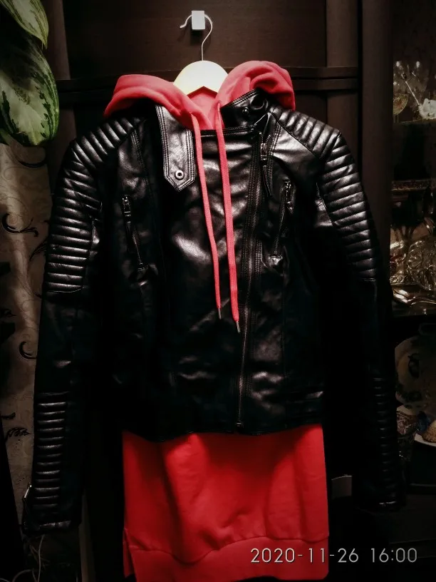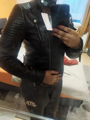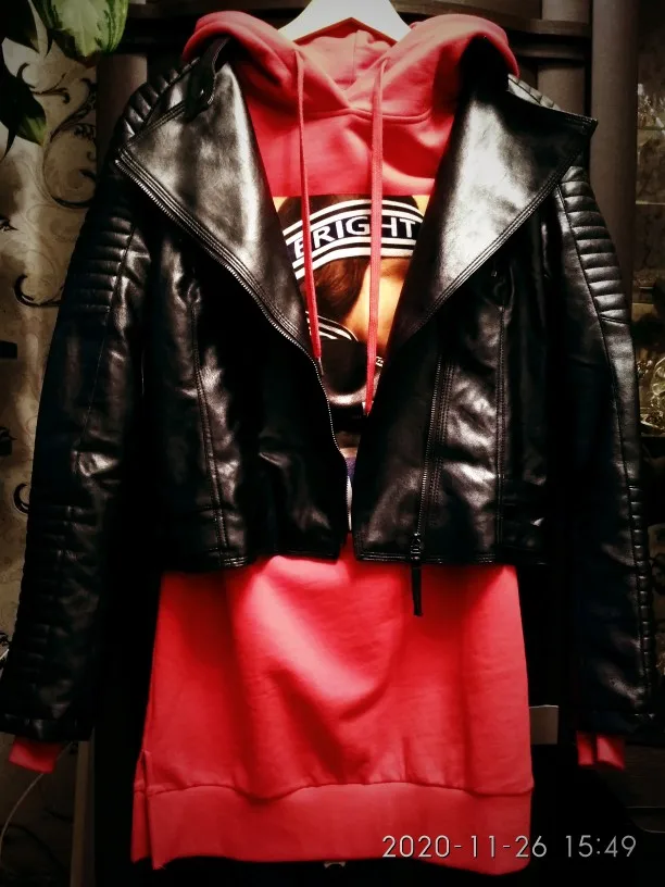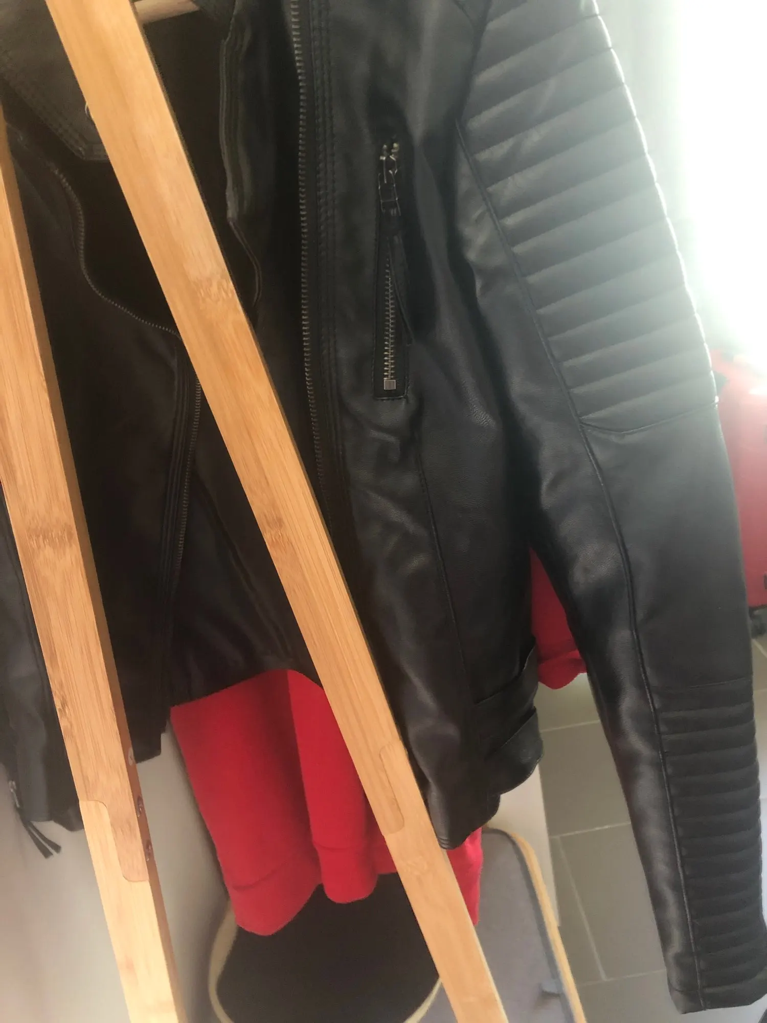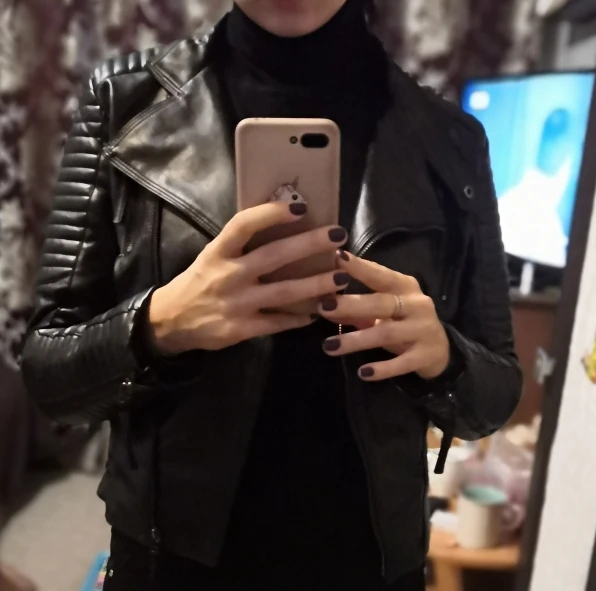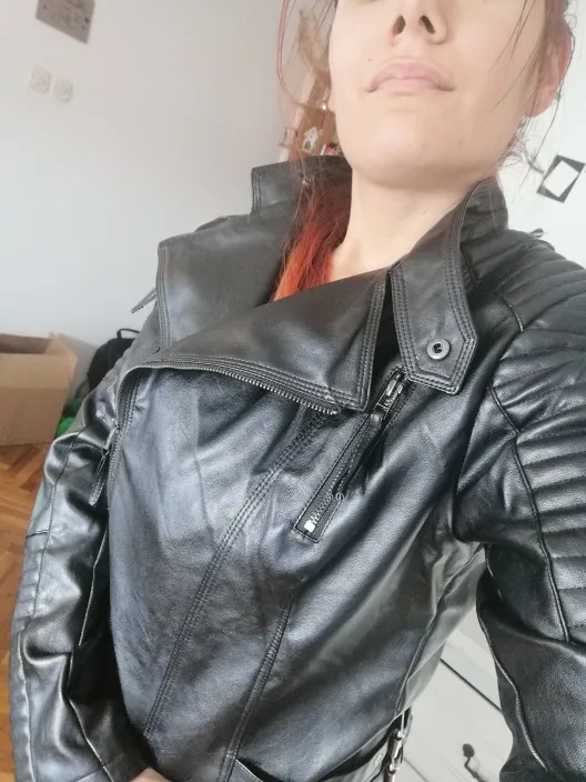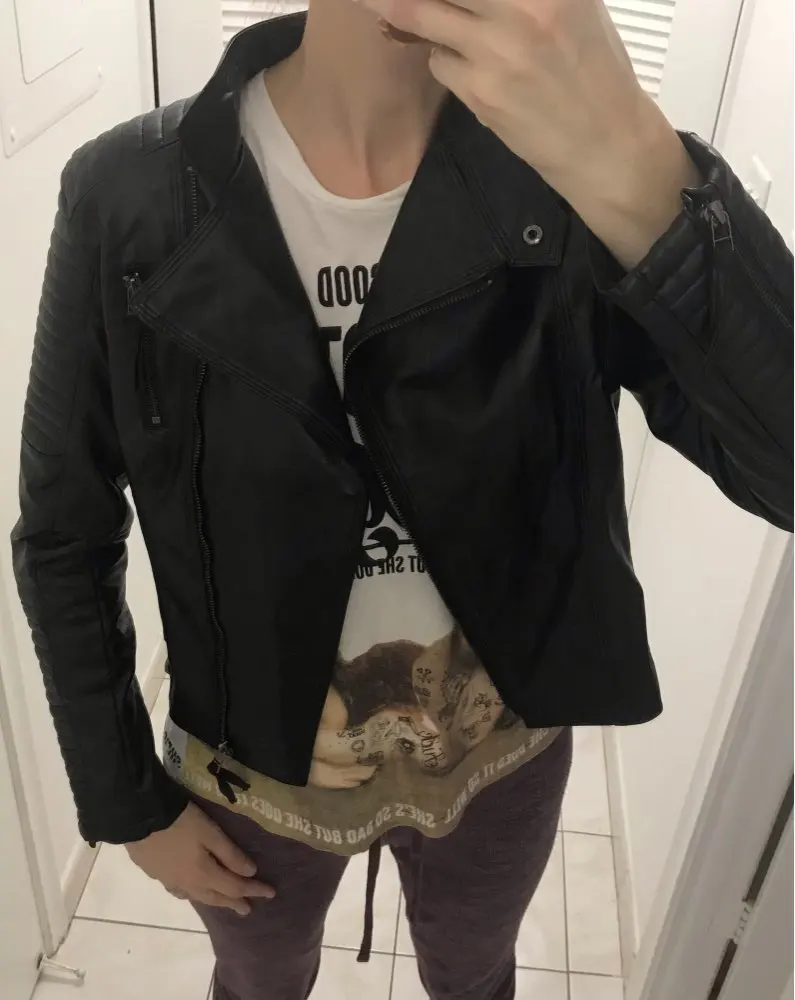 Я оставляю 4 вещи, потому что они немного тонкие, и мне не нравится, как они выглядят на молнии. Он имеет запах, который, кажется, выцветает. В целом это Милая укороченная черная кожаная куртка, которая будет наряжать наряд