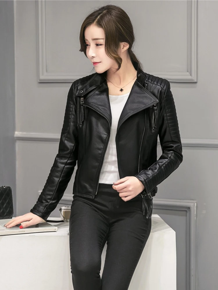 Куртка-Блейзер женская из искусственной кожи, на молнии, демисезонная