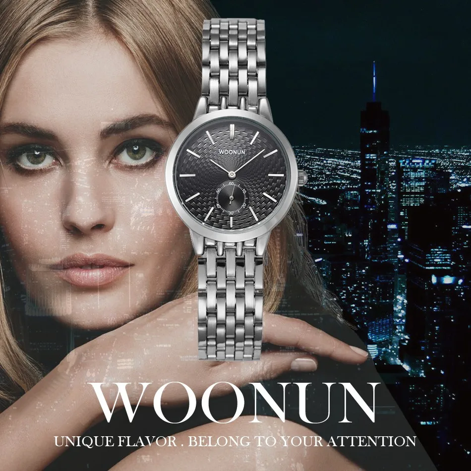 -Браслет из нержавеющей стали и задняя крышка с логотипом Woonun;