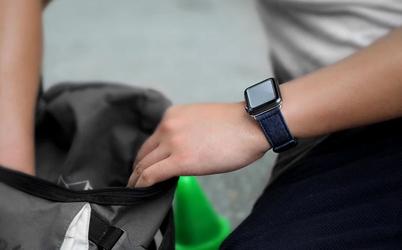 Ремешок URVOI для apple watch series 7 6 SE 5 4 3 2 1, брезентовый браслет для iwatch с классической пряжкой, синяя джинсовая ткань, 40 44 мм