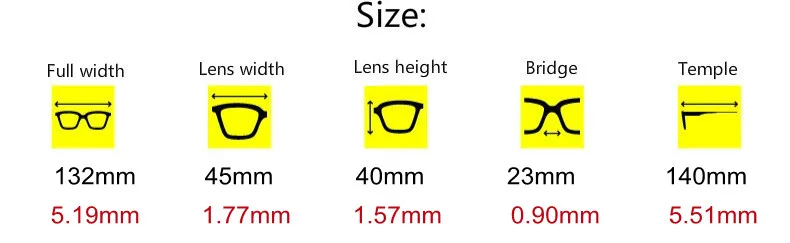 Size 1Lens width 45mm, lens height 40mm, bridge 23mm
