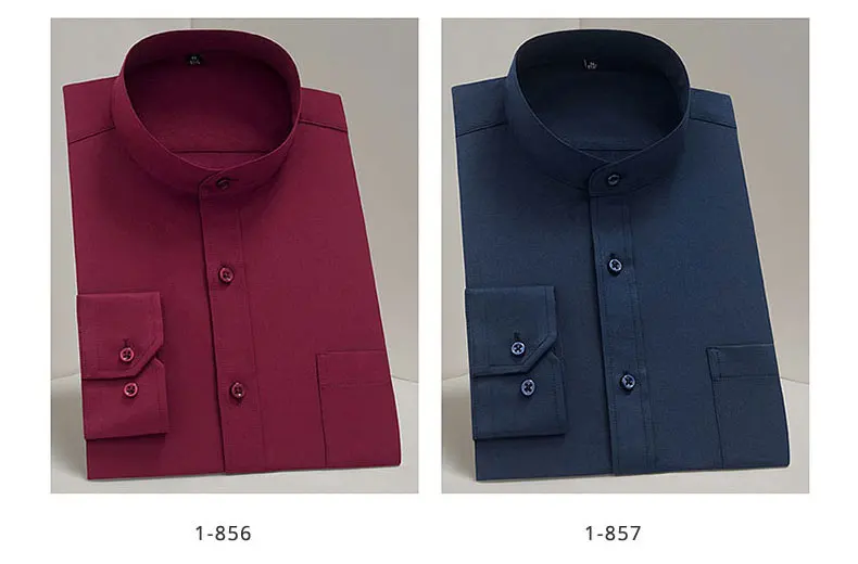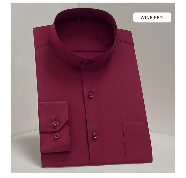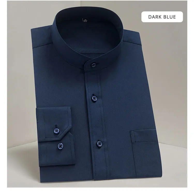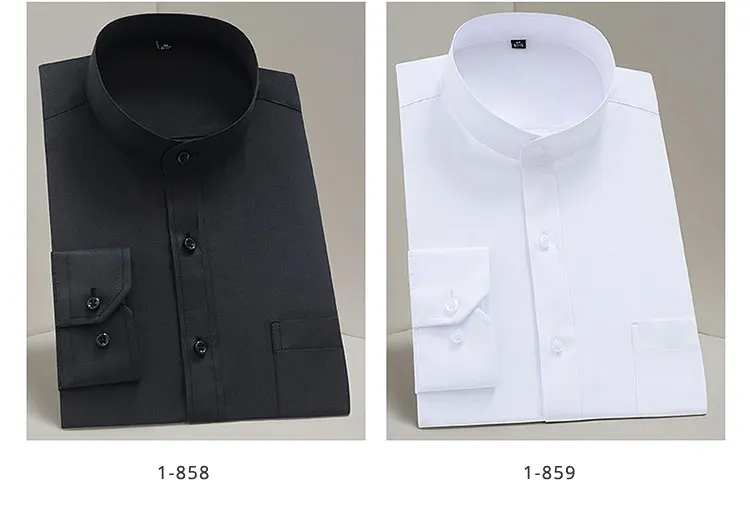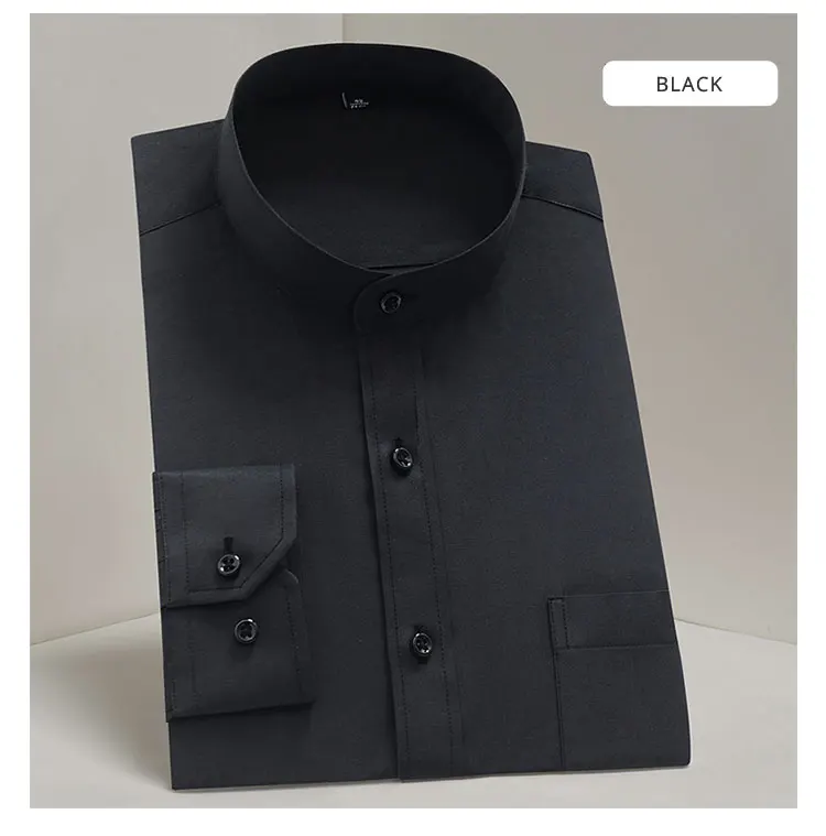 Рубашка мужская однотонная с воротником-стойкой, модная формальная деловая офисная сорочка с длинным рукавом, в стиле смарт-кэжуал, белая черная