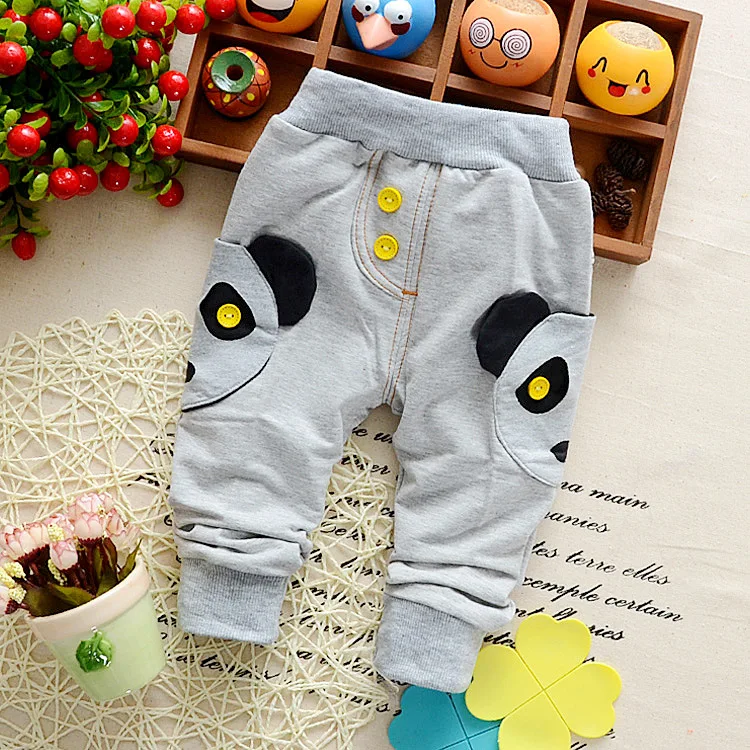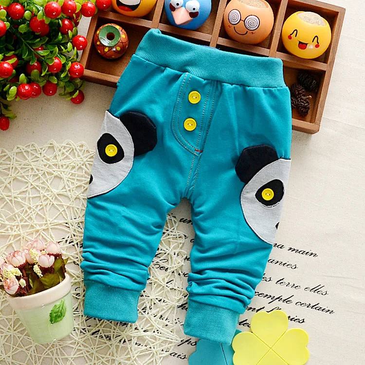 В 2016 году, новые весенне-осенние Хлопковые Штаны хорошего качества с мультяшными наклейками штаны для маленьких мальчиков и девочек От 0 до 2 лет детские шаровары