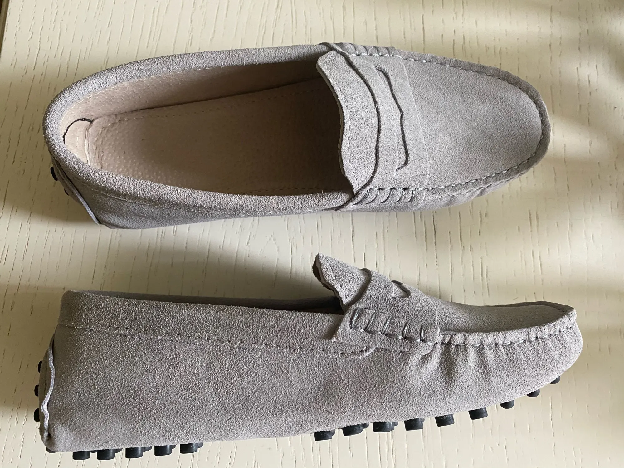 Прекрасный цвет. Действительно натуральная замша. Качественные швы, нет никаких лишних торчащих ниток. Покупала на сменку для работы, за неделю носки макасины приняли форму ноги. Упаковка была качественной, без заломов. Доставили в спб чуть больше чем за 2 недели. В подарок продавец положил носочки. Огромное спасибо продавцу, очень довольна покупкой, рекомендую.