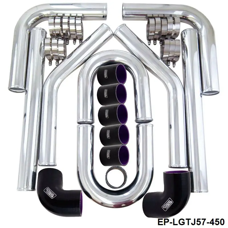 Универсальный турбоинтеркулер 2,25 дюйма, 57 мм, алюминиевая трубка, силиконовый шланг в комплекте, черная Длина: 450 мм, для Jeep Wrangler, EP-LGTJ57-450
