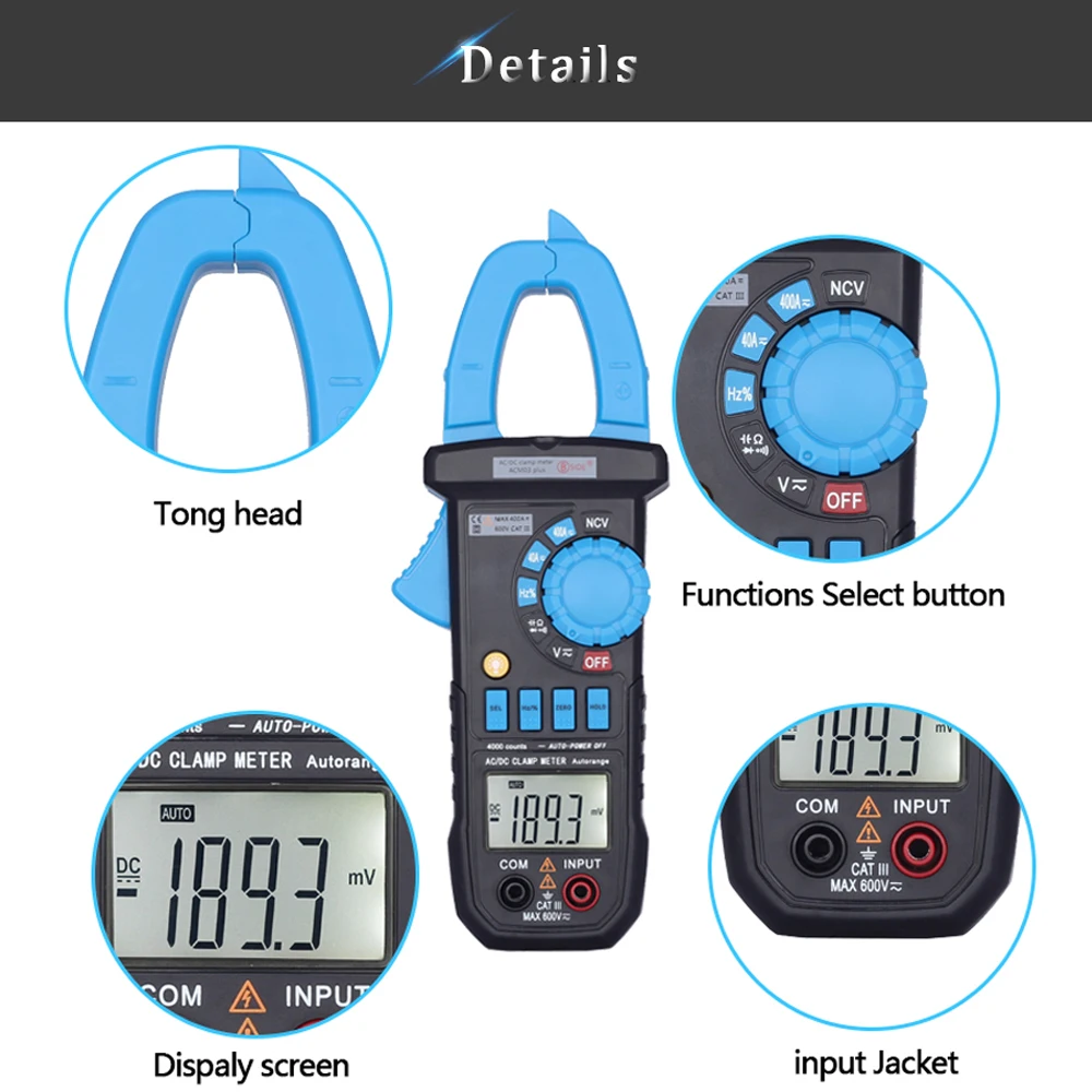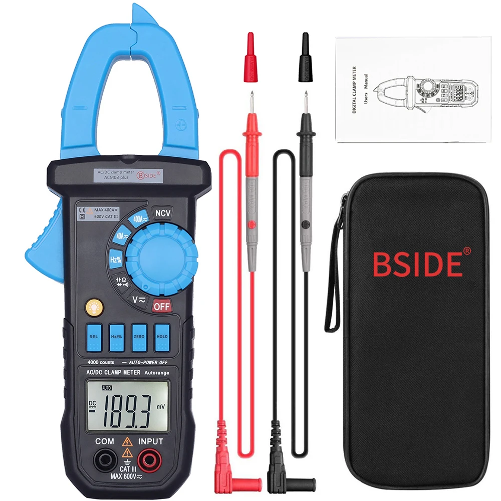 Цифровые токоизмерительные клещи BSIDE, постоянный ток, переменный ток, 400A, амперметр, тестер напряжения, мультиметр, автомобильный вольтметр, ампер, Гц, емкость, тест NCV Ом