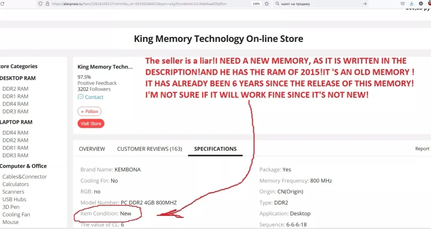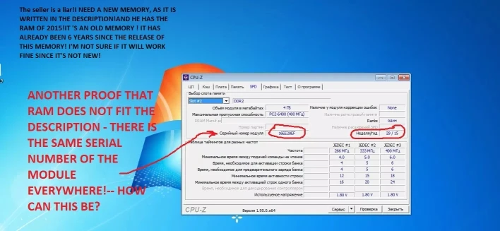 ПАМЯТЬ 2015 ГОДА ВЫПУСКА НИКАК НЕ НОВАЯ КАК ПИШЕТ ПРОДАВЕЦ , ЕСТЕСТВЕННО НОВЫЕ В РОССИЮ НЕ ЗАВОЗЯТ НО ВИДИМО И В КИТАЕ ИХ ПРОСТО ЧИСТЯТ И НЕ ПЕРЕПАИВАТЬ И ПРОВЕРЯТЬ НИКТО НЕ СОБИРАЕТСЯ!ВСЕМ ПОХ!ДО ЭТОГО ПО ЭТОМУ ПОВОДУ ОТКРЫВАЛ СПОР ВЫИГРЫВАЛ , В ДАННЫЙ МОМЕНТ ДАЖЕ УКАЗАЛ О ТОМ ЧТО НОМЕРА У ПАМЯТИ ОДИНАКОВЫЕ , УДИВЛЕН И ОБЕСКУРАЖЕН РЕШЕНИЕМ площадки АлиЭкспресс видимо у них там до сих пор 2015 год ))