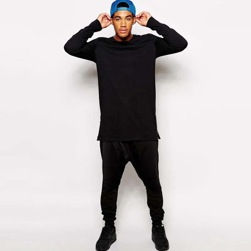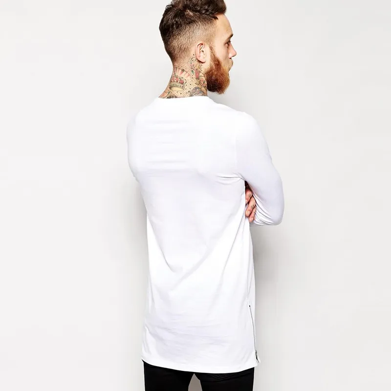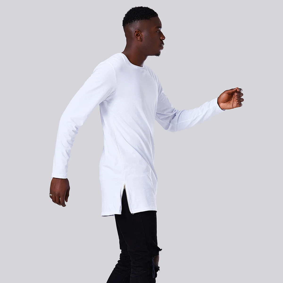 2017 Мужчин Хип-хоп Футболки С Длинным Рукавом Футболка С боковые Молнии майка Мужчины Негабаритных 100% Хлопок Улица Износа Ярусного тройники