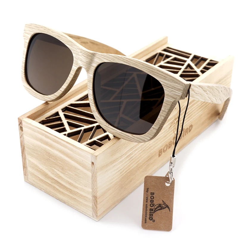 Модные мужские солнцезащитные очки BOBO BIRD поляризационные деревянные бамбуковые солнцезащитные очки Квадратные в подарочной коробке Прямая поставка под заказ OEM