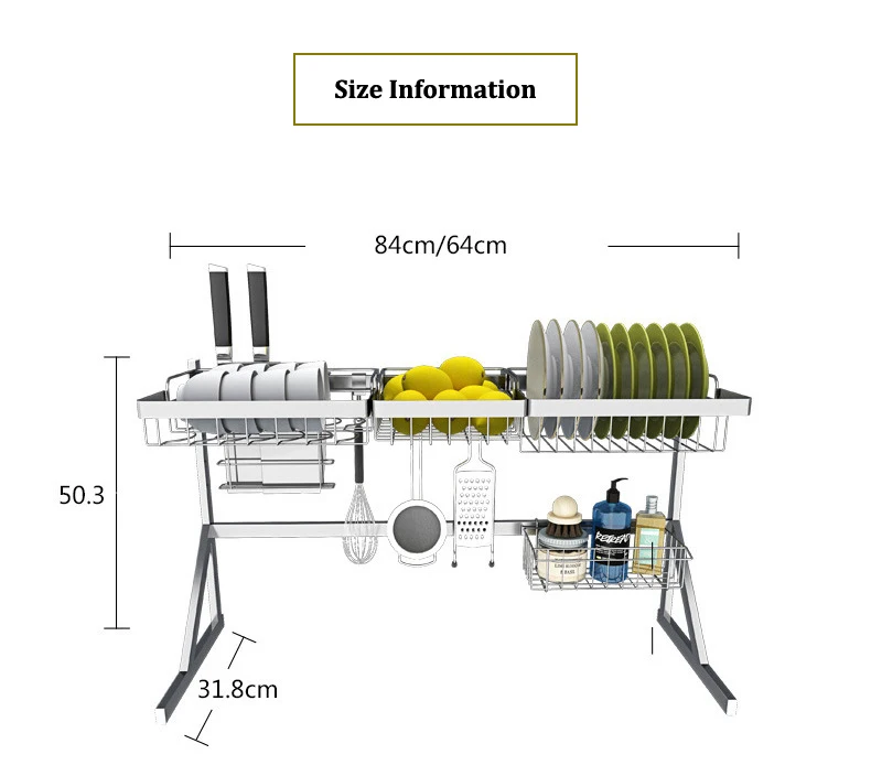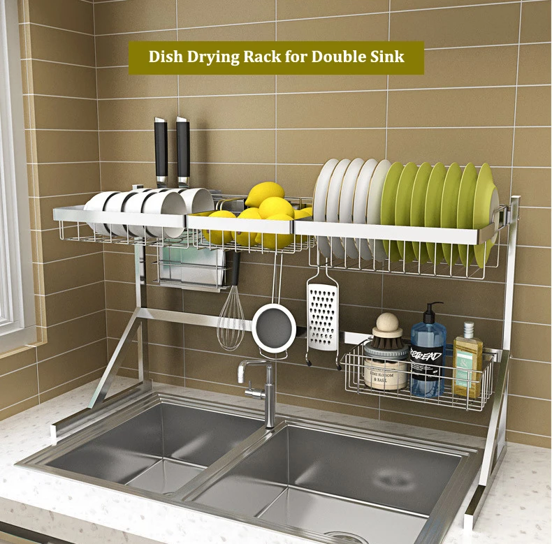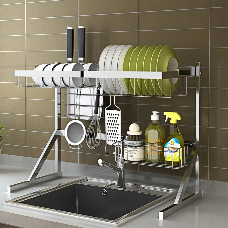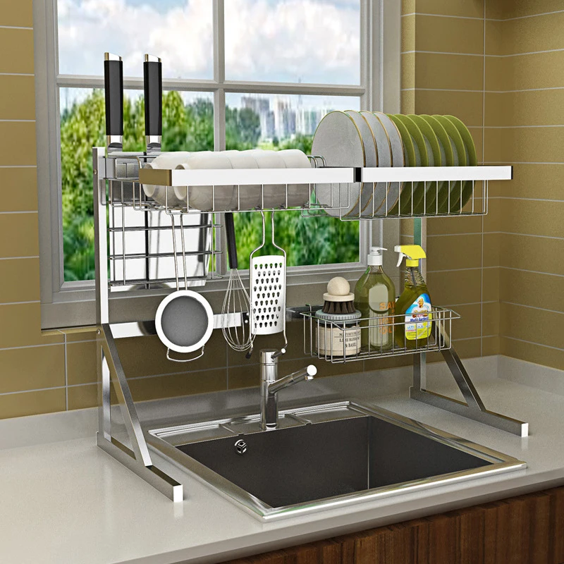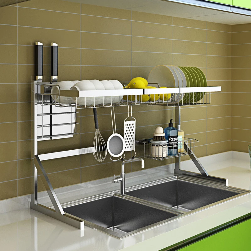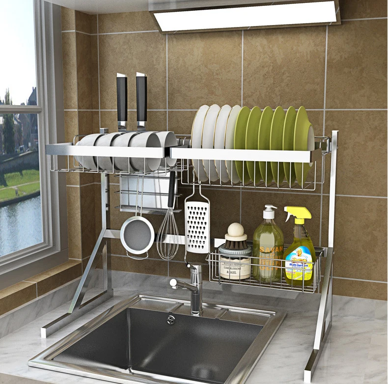 Сушилка для посуды из нержавеющей стали, кухонная слив, полка для посуды, миска, счетчик-организатор, экономия места на раковине