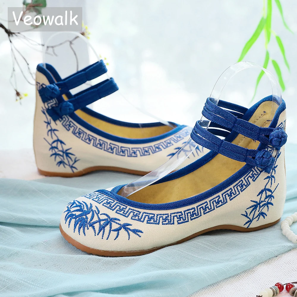 VeowalkМодные женские балетки ручной работы; Обувь для танцев; Мягкая повседневная обувь с китайской цветочной вышивкой; Тканевая прогулочная обувь на плоской подошве