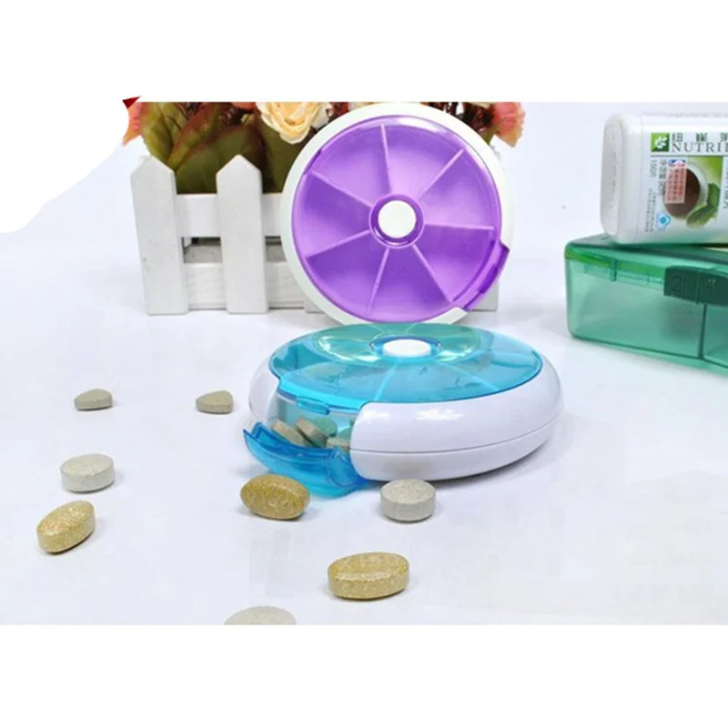 1 шт., круговой поворот, коробка для таблеток, 7 слотов, Круглый, ежедневный, еженедельный, чехол для таблеток, разделители, медицина, держатель для планшета, органайзер, дозатор