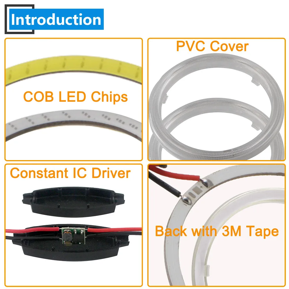 2 шт. 70 мм ангельские глазки 12 В COB 45 SMD светодиодные гало кол...