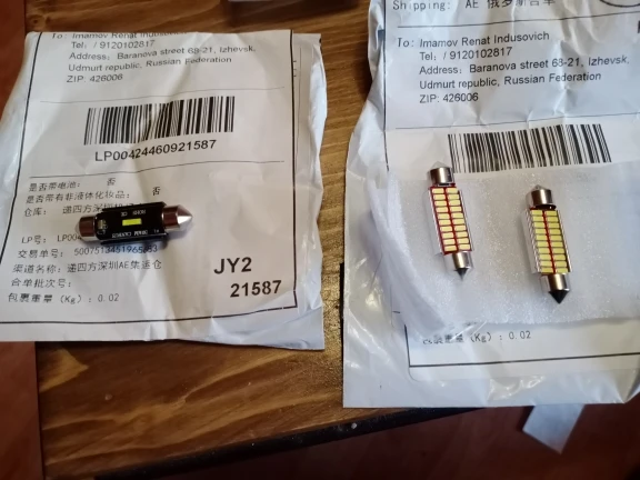 Цена - качество. Главное работают. Все диоды работают. Радиатор на одной лампе наклеен криво, но думаю ни как не повлияет на работу. Упаковка сохранила содержимое и это главное. Трек отслеживался. В Ульяновскую область почтой России пришла за 16 дней. Брал для плафона освещения салона ВАЗ 2114. Светят достойно, даже лучше трехрядных этого же продавца. Взял 36мм но с легко подойдут 39мм