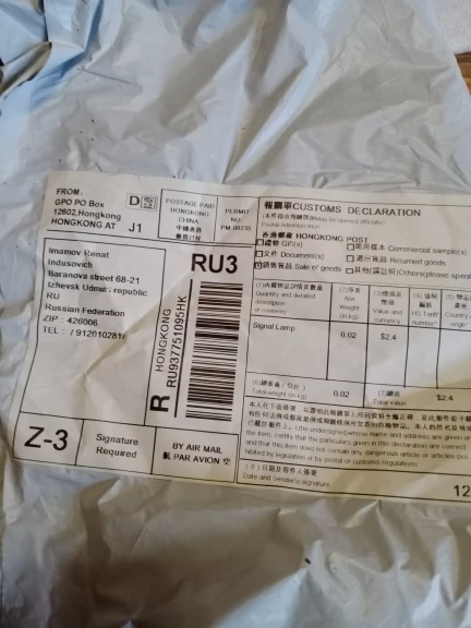 Страна: HU Emitting Color: 39mm white Доставка: China Post Registered Air Mail 03.12.2020