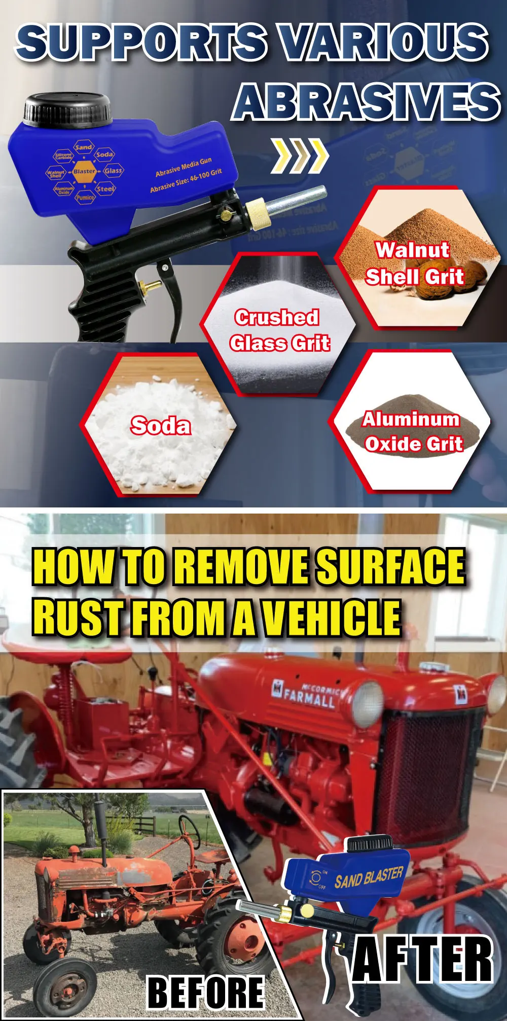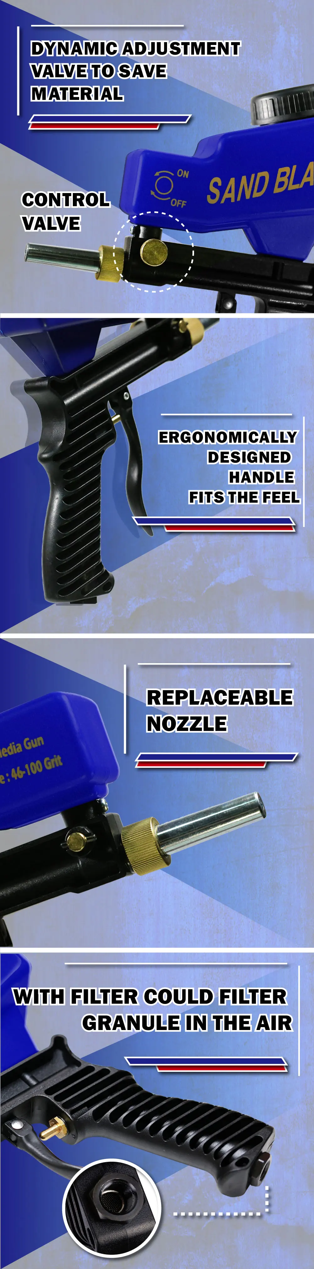 Пескоструйный пистолет с гравитационной подачей, для удаления ржавчины