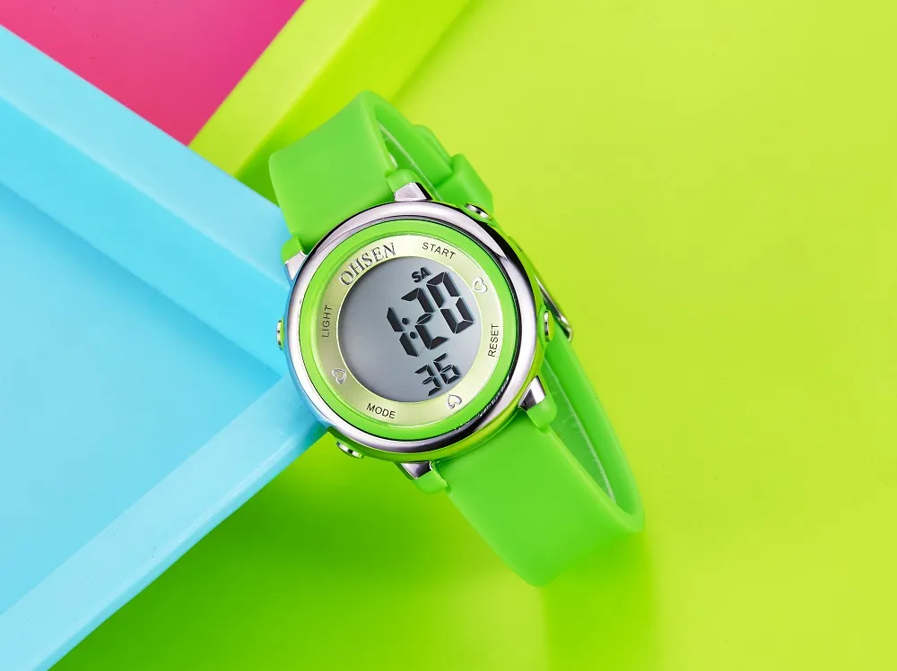 -Название бренда: OHSEN -Стиль: спортивный, Повседневный, уличный -Тип дисплея: светодиодный, цифровой -Чехол Диаметр: 34 мм -Чехол Толщина: 15 мм -Материал корпуса: Высокопрочный пластик с металлическим ободком -Ширина ремешка: 16 мм -Материал ремешка: Резина -Длина ремешка (чехол входит в комплект): 212 мм -Механизм: Цифровой -Водонепроницаемость: материал подошвы: полиуретан толщина 50 м (165FT)