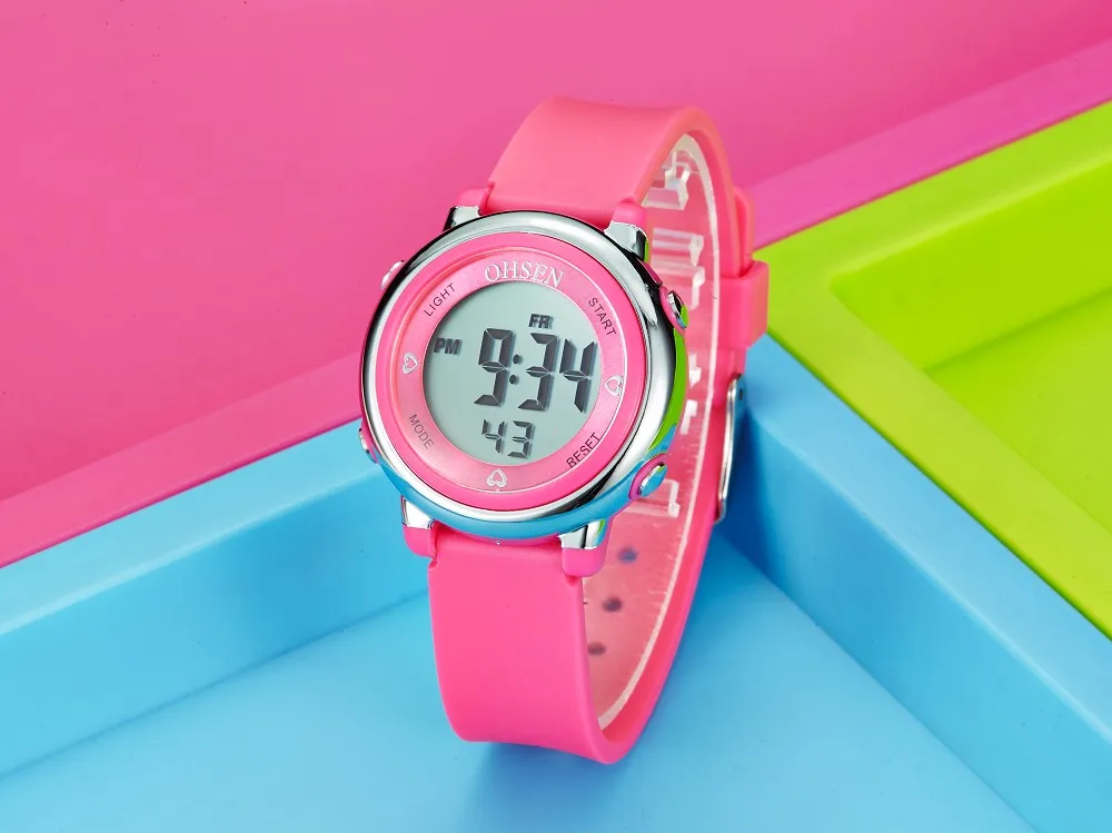 OHSEN цифровые детские часы, 5ATM водонепроницаемые светодиодные спортивные модные женские наручные часы, фиолетовые часы для девочек, подарок