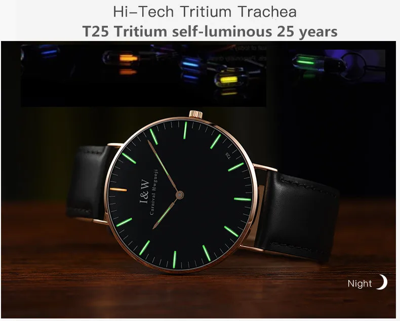Часы женские, водонепроницаемые, карнавальные, тритиевые, светящиеся