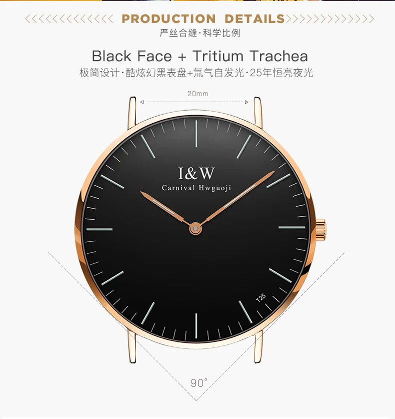 Бренд: Carnival I & W Артикул: C8757 Цвет циферблата: белый, черный Цвет ремешка: полностью стальной серебристый, полностью стальной черный, черный кожаный, коричневый кожаный Функция: Тритий T25, самосветящийся Производительность: 30 м водонепроницаемость, Круг часов: тонкая сталь 316L Механизм часов: швейцарский кварцевый механизм Ronda Зеркало: сапфировое зеркало, устойчивое к царапинам Материал циферблата: полностью стальной корпус часов Материал полосы: тонкая сталь 316L, Высокоуглеродистая сталь, Воловья кожа Пряжка: булавка Упаковка: изысканная коробка для часов, инструкция по эксплуатации, гарантийный талон Гарантия: 1 год (Искусственные повреждения выходят за рамки гарантии.) . Размер продукта, как показано ниже: Диаметр циферблата: около 36 мм, Толщина: около 10 мм Длина ремешка (включая циферблат): около 21 см . Обратите внимание (SF: 832922) . 1. Все измерения выполнены вручную, возможно отклонение. Пожалуйста, имейте в виду. 2. Из-за разницы светильник щении при фотосъемке цвет изображения может отличаться, ориентируйтесь на цвет реального товара. 3. Любые часы не устойчивы к горячей воде. Поэтому, пожалуйста, не носите часы, чтобы принимать горячую ванную. 4. Пожалуйста, проверьте, вставлена ли заводная головка часов, иначе вода попадет из заводной головки.