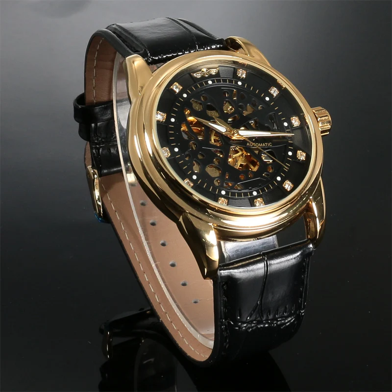 Часы-скелетоны мужские, механические, с автоподзаводом и кожаным ремешком