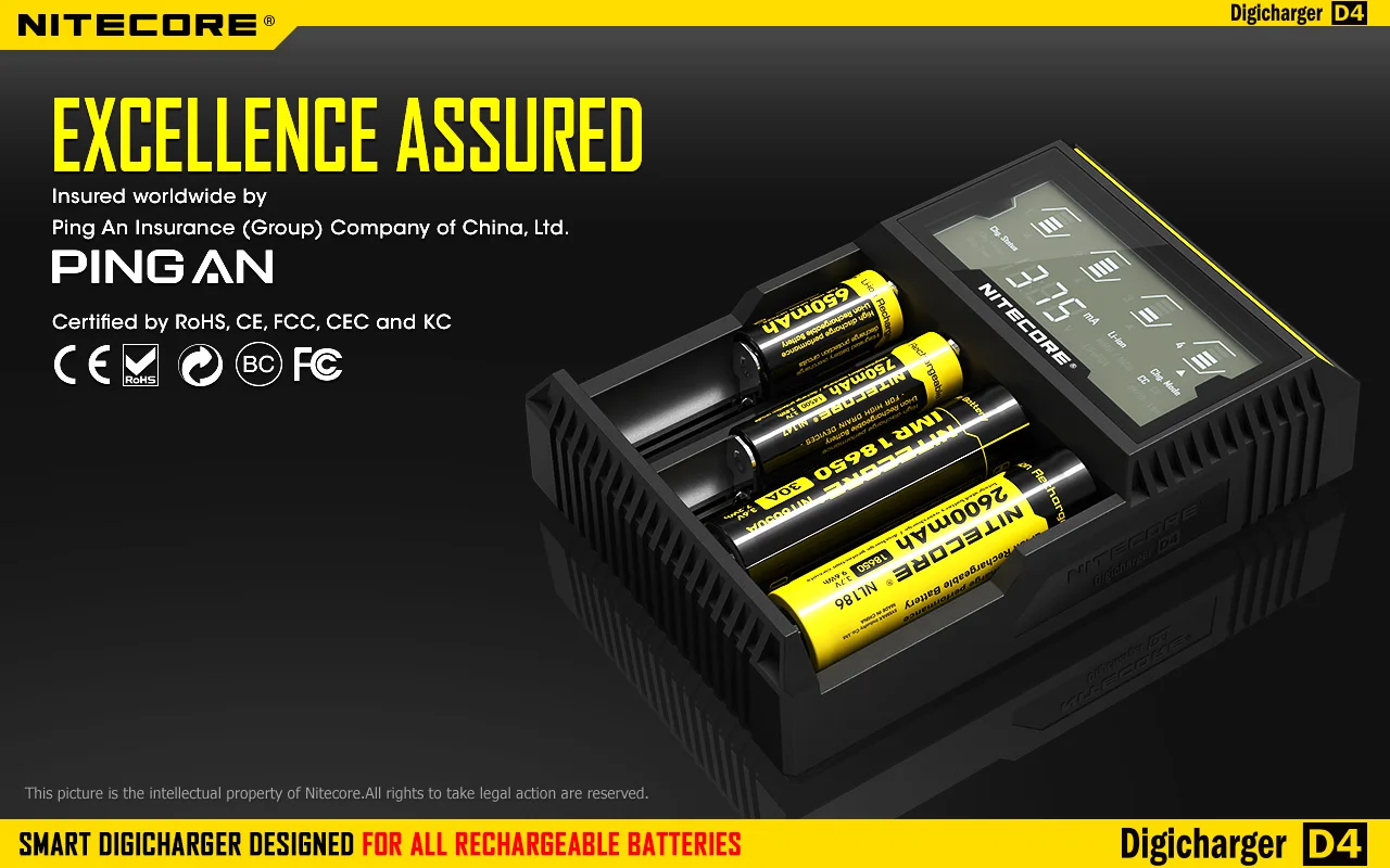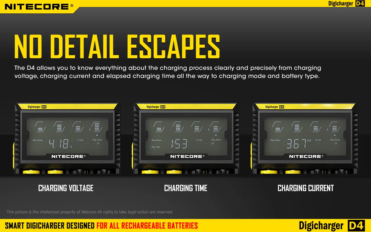 2017 оригинальное зарядное устройство NITRCORE 100% D2 D4 Dig, зарядное устройство с ЖК-дисплеем для 26650 18650 18350 16340 14500