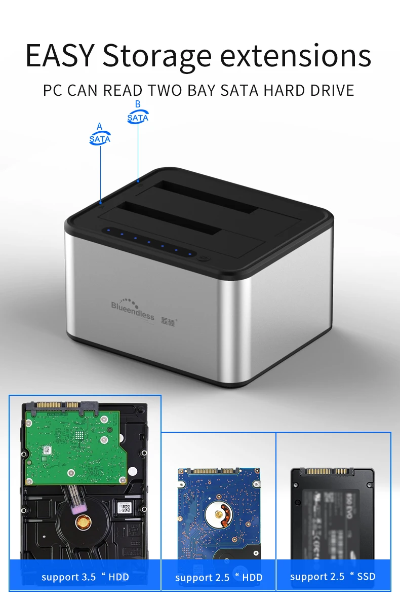 3,5 Hdd внешний бокс 2 Bay док-станция Hd футляр для внешнего жесткого диска Hd внешний 1T 2T для ПК, Mac,Laotop аксессуары
