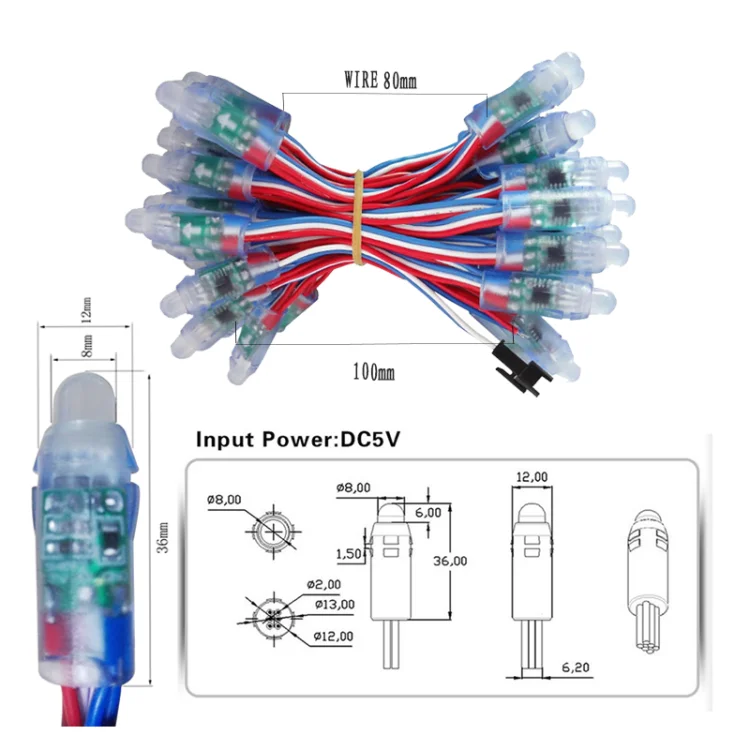 Адресный полноцветный светодиодный пиксельный модуль WS2811, 12 мм, 50 шт., 2811 IC, DC5V, строка, класс IP68, RGB, цифровой рождественсветильник