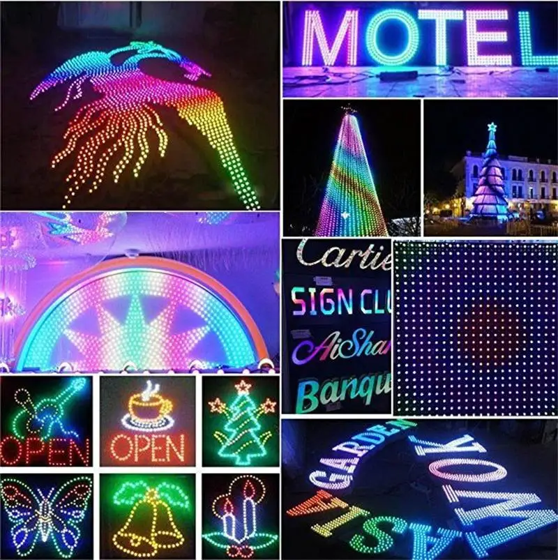 Соответствует описанию. Без проблем каскадируется из нескольких гирлянд. Одну гирлянду можно растянуть от 1 до 4 метров. Подключается к большинству контроллеров имеющихся на Али.