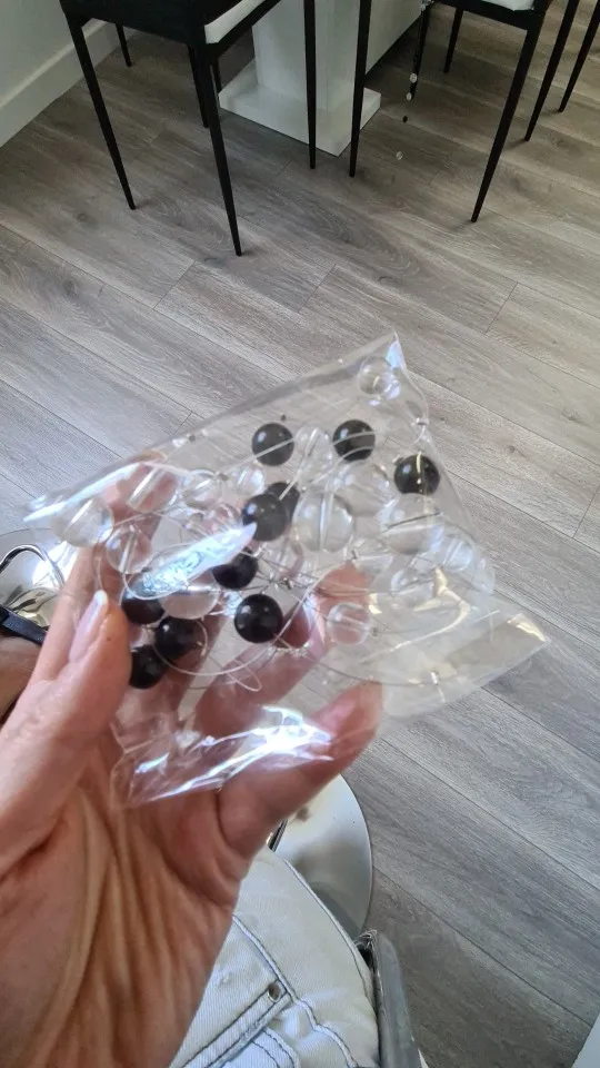 Всё пришло целое, единственное шарики тёмно-фиолетовые. Хорошо упаковано. Успели до Нг, спасибо