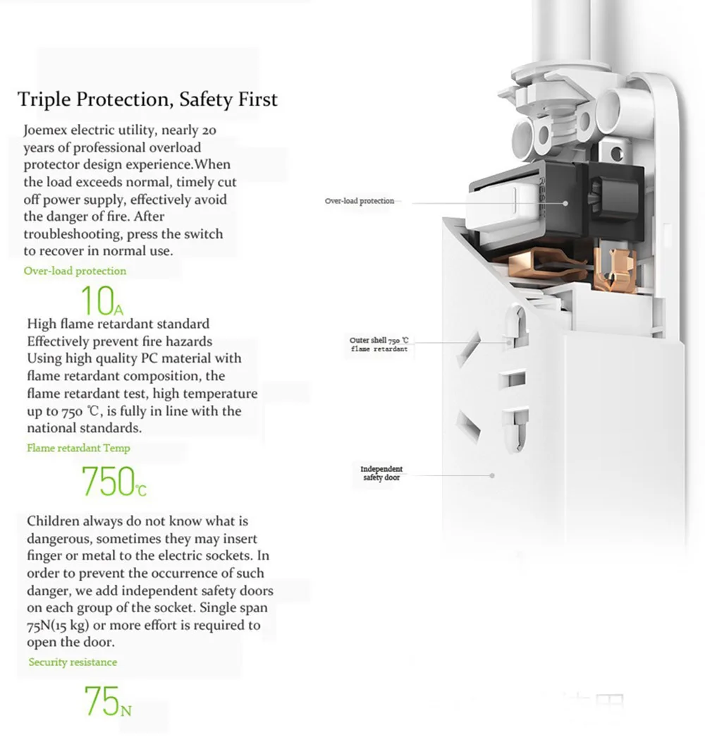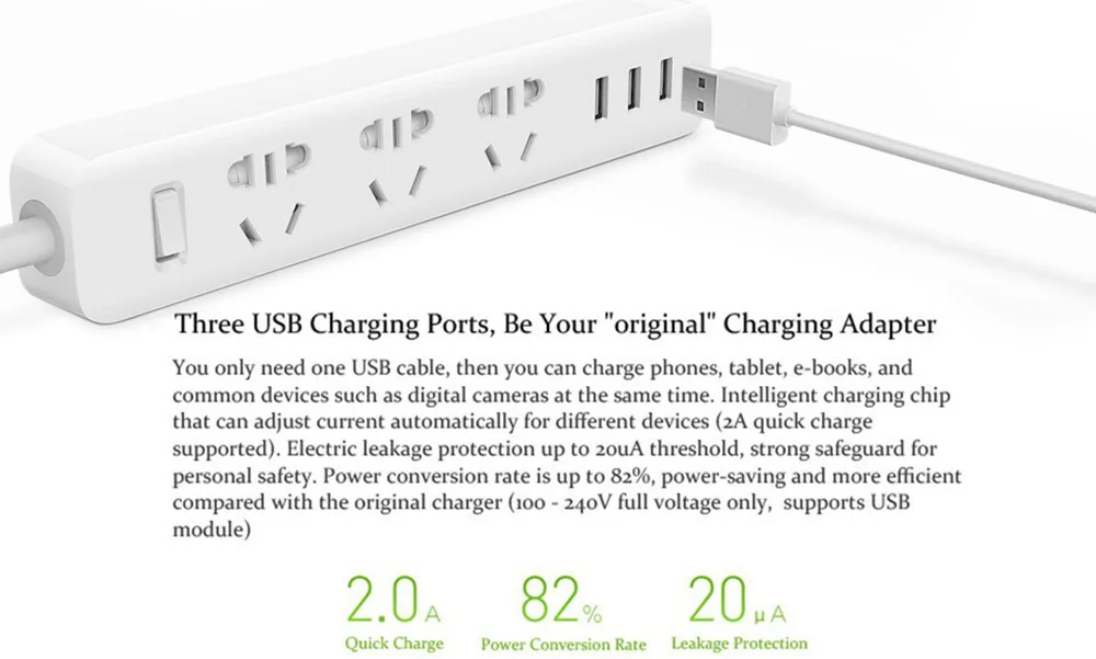 С 3 интеллектуальными портами USB и другими обычными компонентами, лента питания удовлетворит ваши требования при различных обстоятельствах.