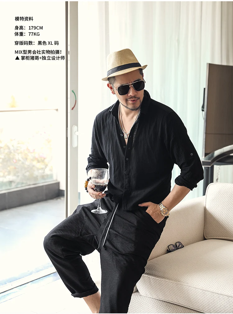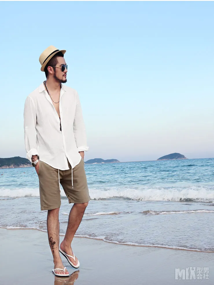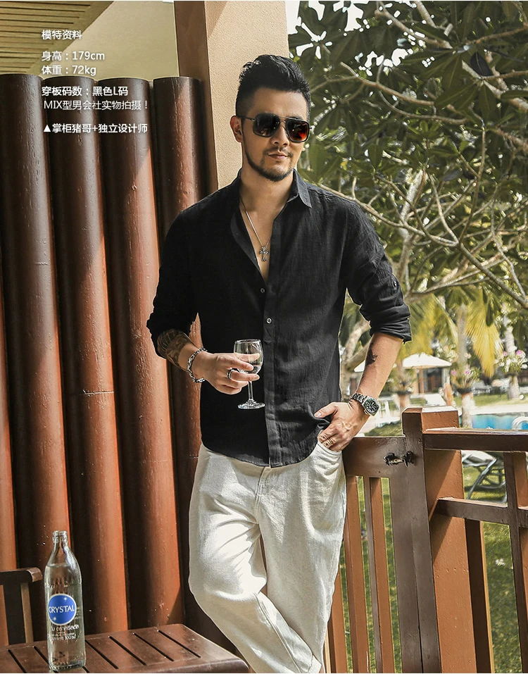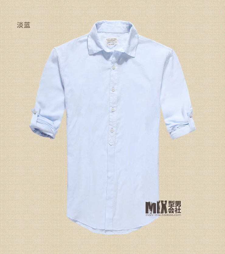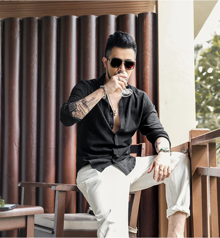 Мужская льняная рубашка с длинным рукавом, повседневная приталенная однотонная деловая рубашка из льна, высокого качества, S242