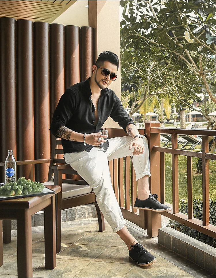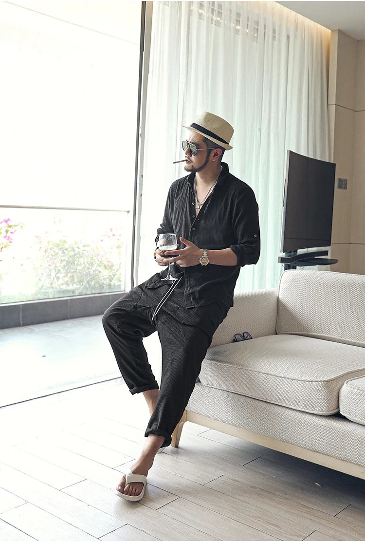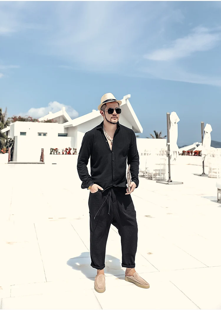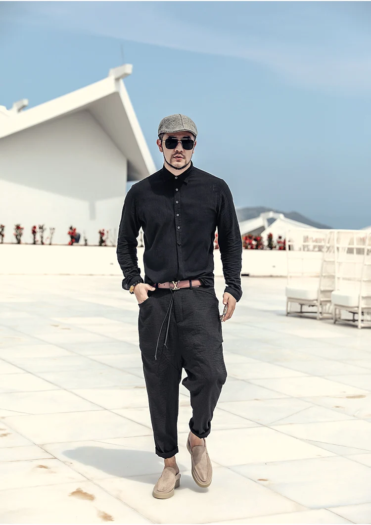 Мужская льняная рубашка с длинным рукавом, повседневная приталенная однотонная деловая рубашка из льна, высокого качества, S242
