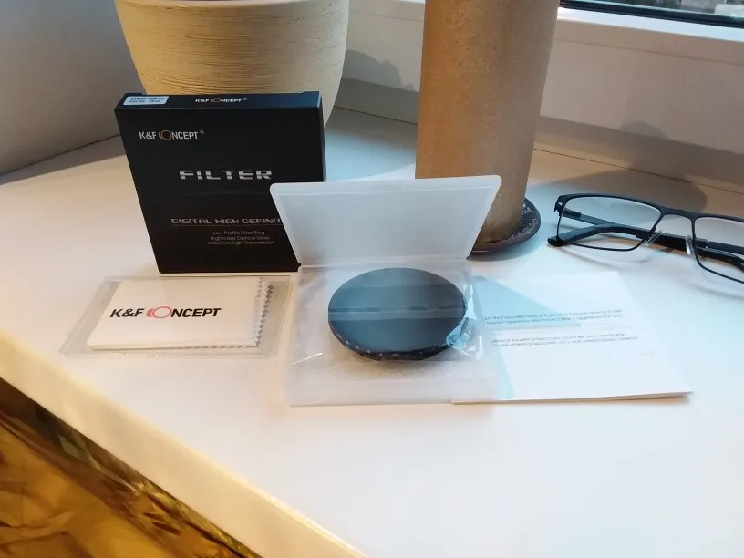 K&F как всегда на высоте! Качество фильтра отличное, вращается очень мягко. В этот раз в комплекте положили салфетку для протирки фильтра. Упаковка очень хорошая, ничего не помялось. Доставили в течении месяца, за что продавцу отдельное спасибо. Трекинг присутствует, а больше и написать нечего, потому как всё просто супер! Рекомендую и продавца, и товар! P.S. продавец частенько даёт хорошие скидки, за что ему жирный лайк.