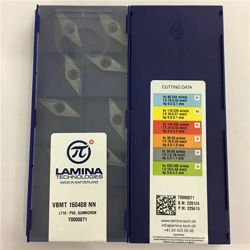Карбидная вставка LAMINA LT10, 10 шт.лот, VBMT160408-NN, 100%
