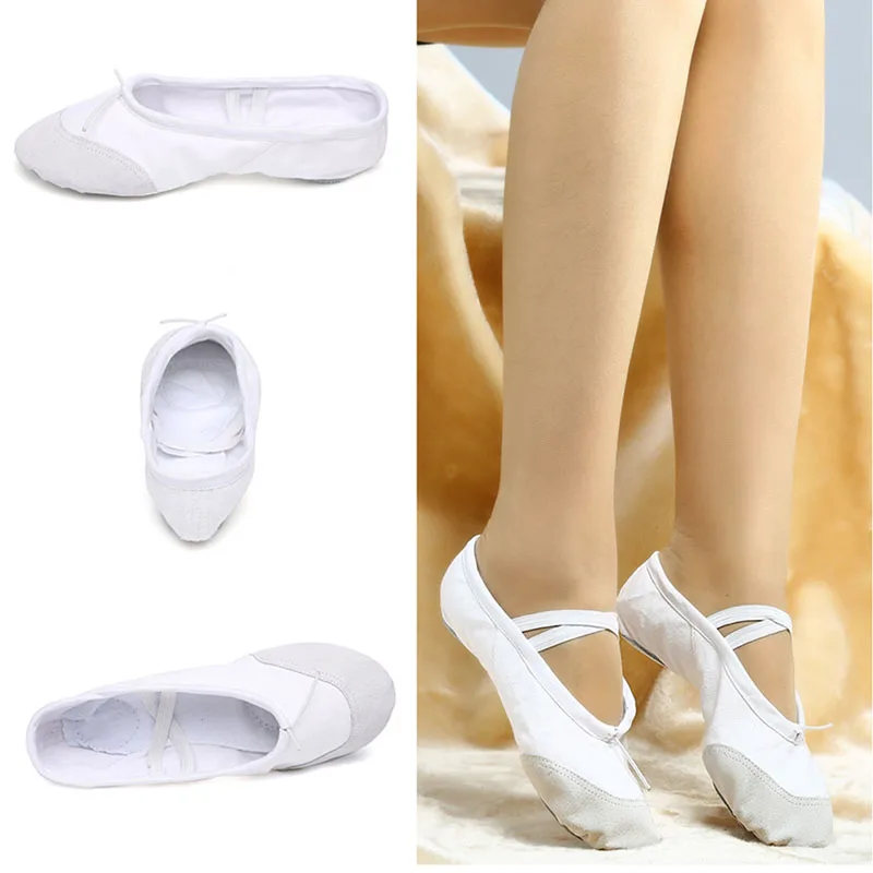 Текстильные белые балетные танцевальные туфли для детей и девушек