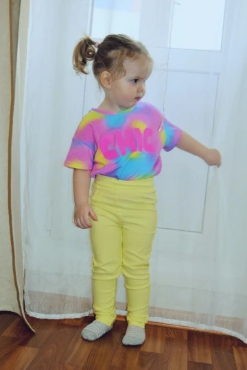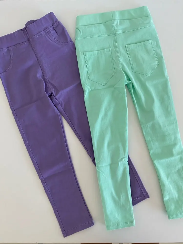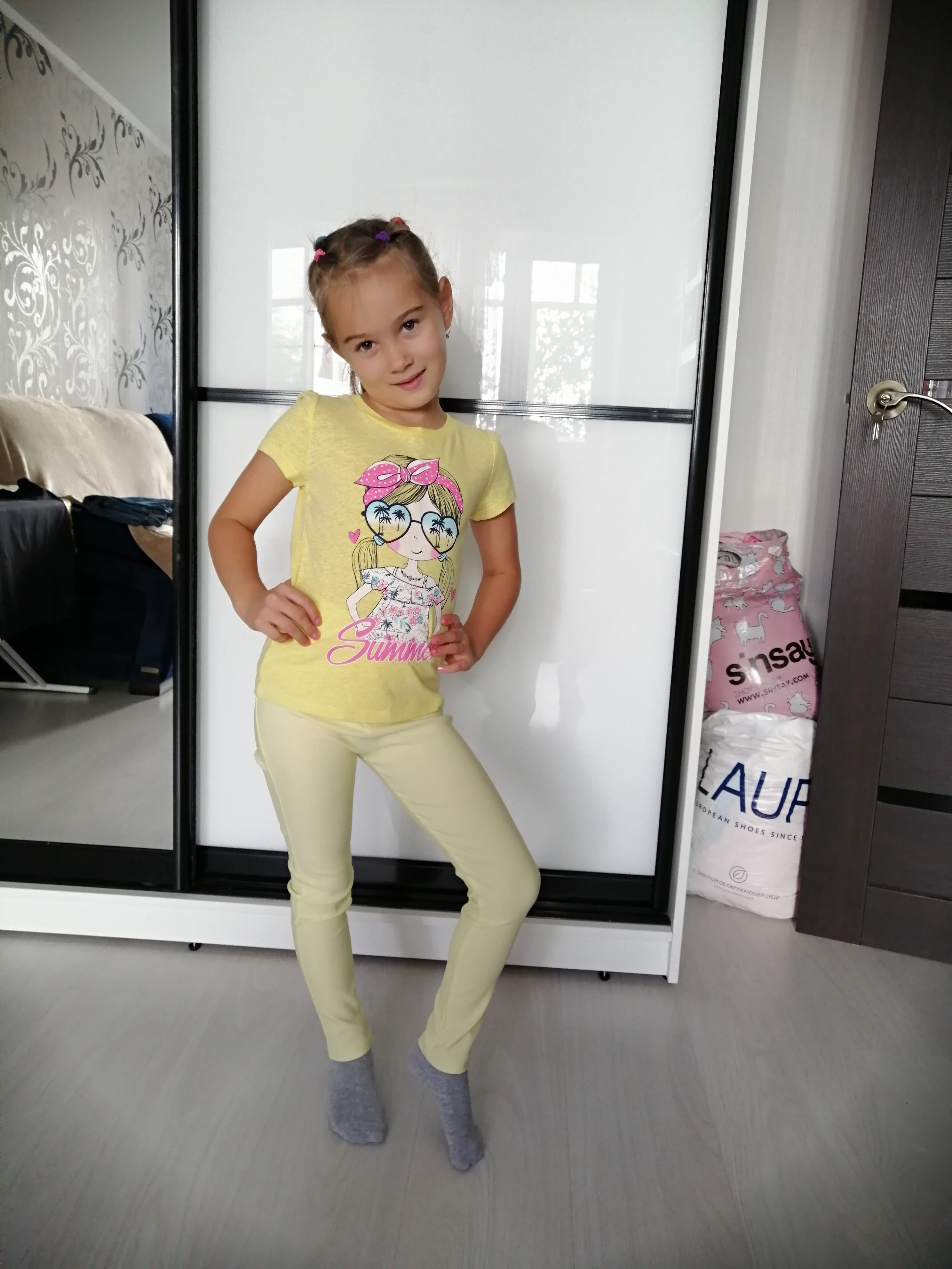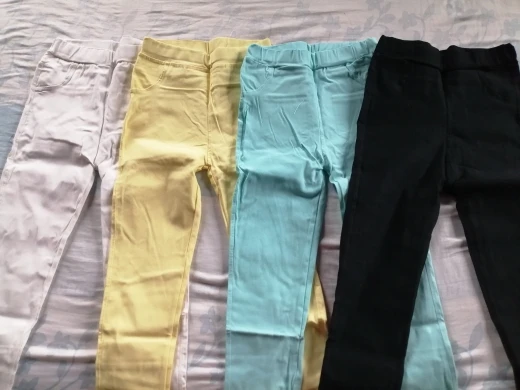 Штаны очень клёвые, именно такие как я и надеялась получить. Это точно не скрипучая синтетика, это хлопок с эластаном или стрейч, я не очень разбираюсь в тканях, но они очень комфортный для носки. Смотрятся на ребенке просто шикарно, моя не худышка, средняя по телосложению, опять же по отзывам они очень узкие. Да они в обтяг, но без дискомфорта нигде не давит, ребёнку удобно в них двигаться. Размер я взяла 3т на девочку 2 лет, за счёт того что штаны хорошо тянутся их и сейчас можно носить и через год одеть.