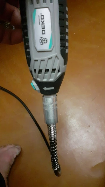 Сделано качественно, добротно. Садится как влитое. Ключа, Г-образного стопора и цанги для дремеля (для зажима тросика) нет в комплекте. Ключ подходит обычный от дремеля, цанга также стандартная подходит. Сразу по советам в отзывах достал тросик и смазал (я смазывал PTFE-спреем) слегка греется, но я работаю на небольших оборотах. Работает тихо, но вибрирует часть в руке. Отправлял продавец долго. В общем товаром я доволен! Спасибо продавцу и производителю.