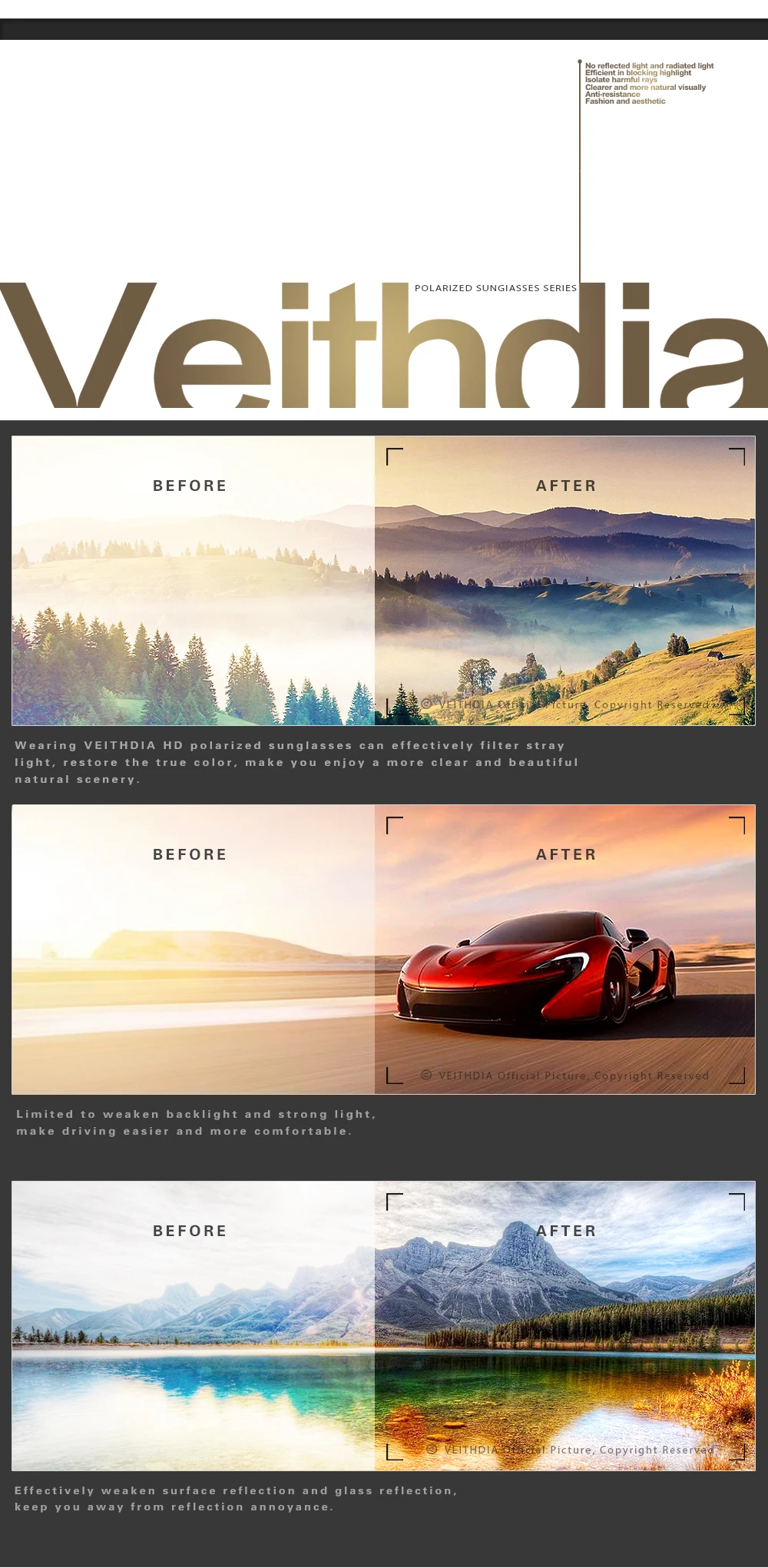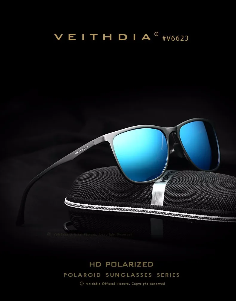 Мужские солнцезащитные ретро-очки VEITHDIA, винтажные очки из алюминиево-магниевого сплава с поляризационными стеклами, модель 6623, 2019