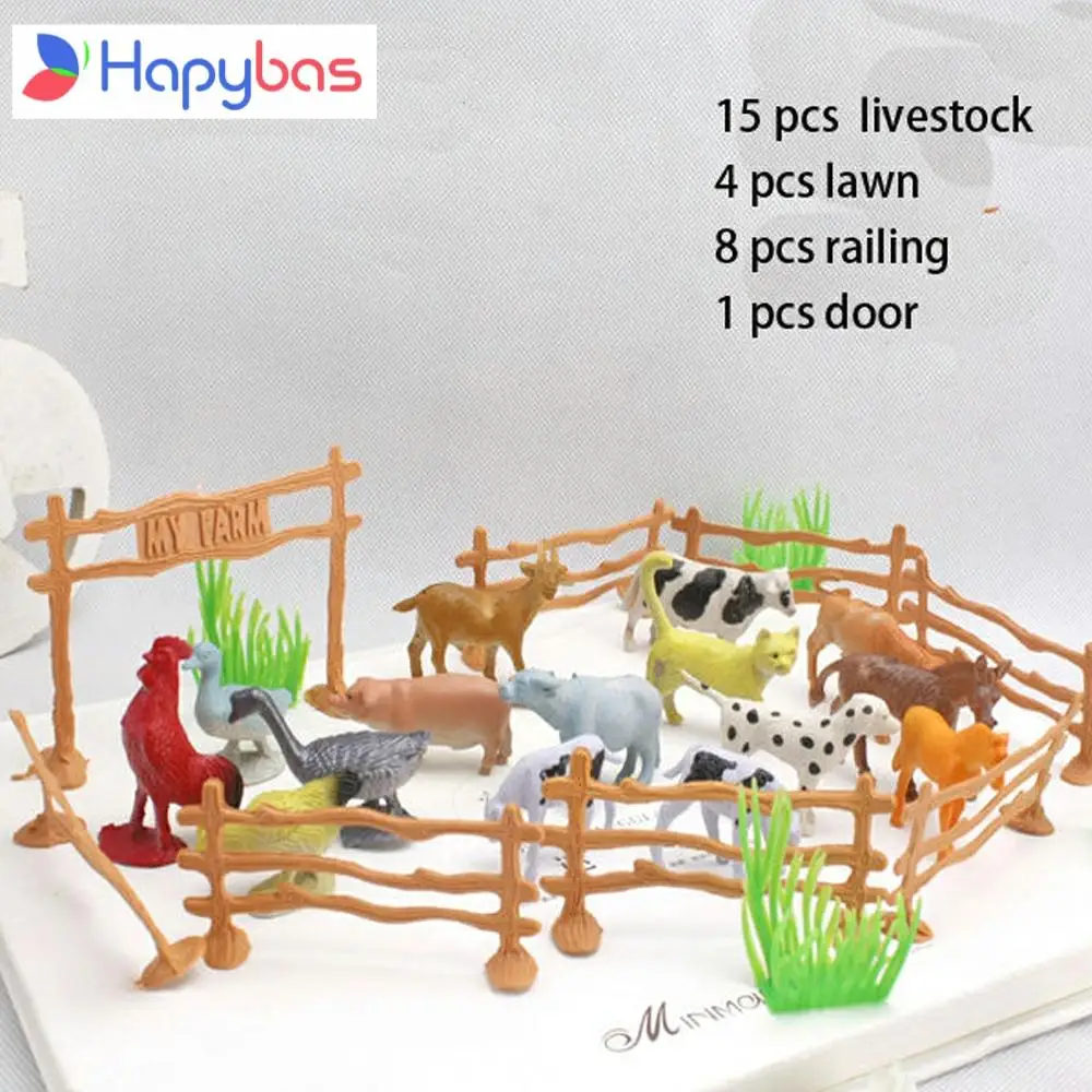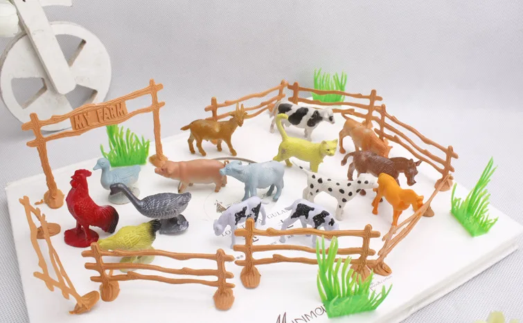 Игрушечные животные 15 шт.упак., домашняя Ферма 2 дюйма, корова, собака, овечка, гусь, семейная ферма, птица, корм, забор, имитация игрушки для детей