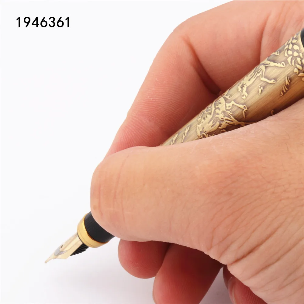 Ручка перьевая Baoer 507 металлическая медная, с тиснением восемь лошадей