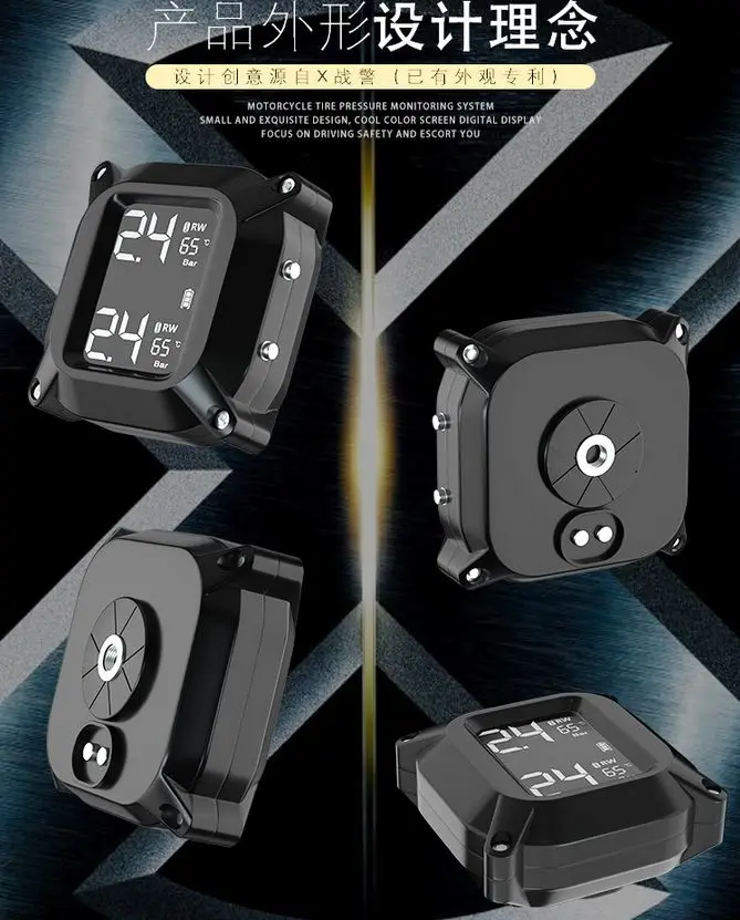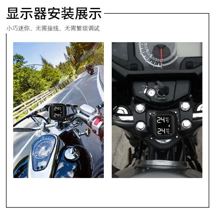 Беспроводная система контроля давления в шинах мотоцикла с держателем, водонепроницаемые, с 2 внешними датчиками