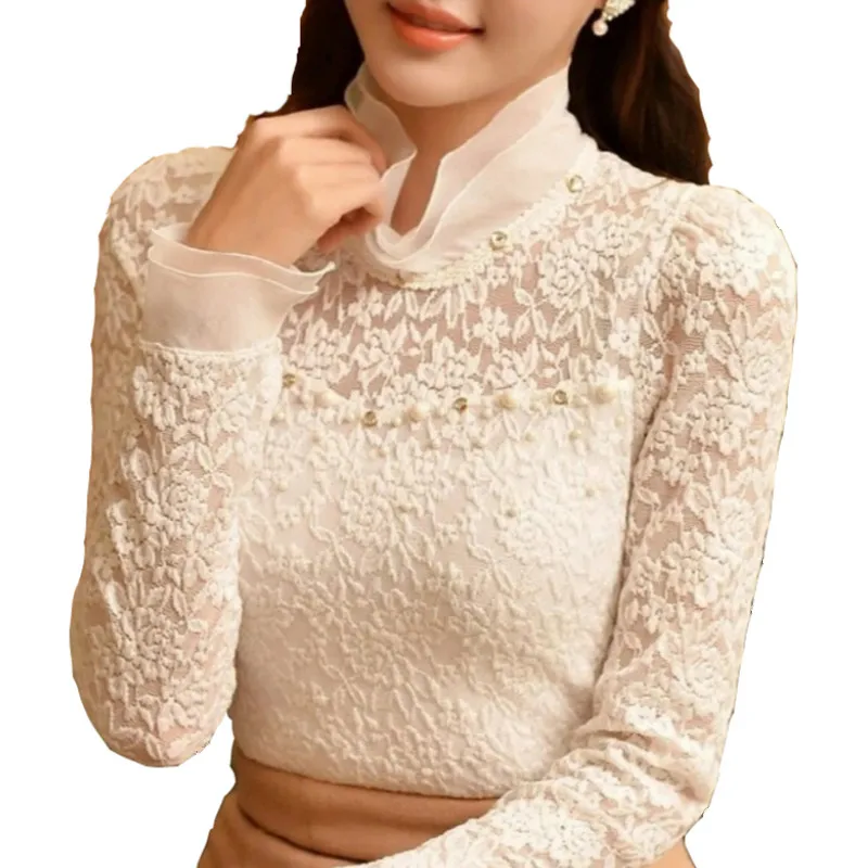 Женская кружевная блузка с оборками на воротнике, размера плюс 5XL