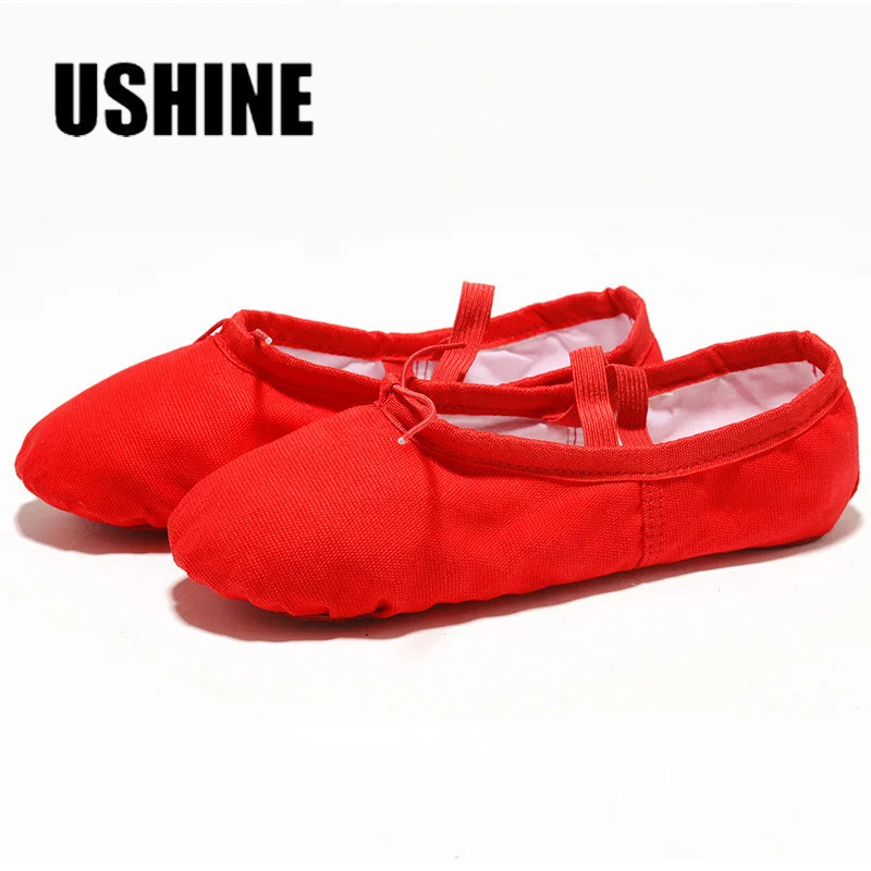 USHINE 22-45; Балетки для девочек; Классическая парусиновая танцевальная гимнастика с раздельной подошвой; Детская обувь для йоги; Танцевальная обувь для детей; Женские балетки