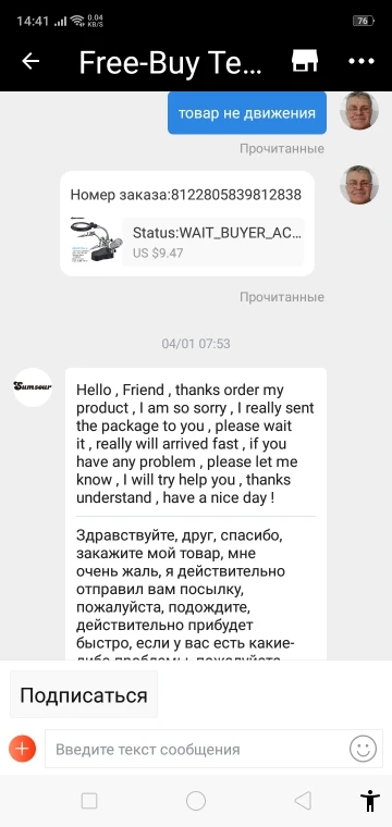 Не получил товар в течение 4 месяцев, не связался с продавцом, спор всегда задерживается каждые 10 дней, информация об отслеживании отсутствует, возврат был только половина цены, я действительно заплатил и все еще нет товара, экономьте свои деньги, не покупайте у этого продавца.